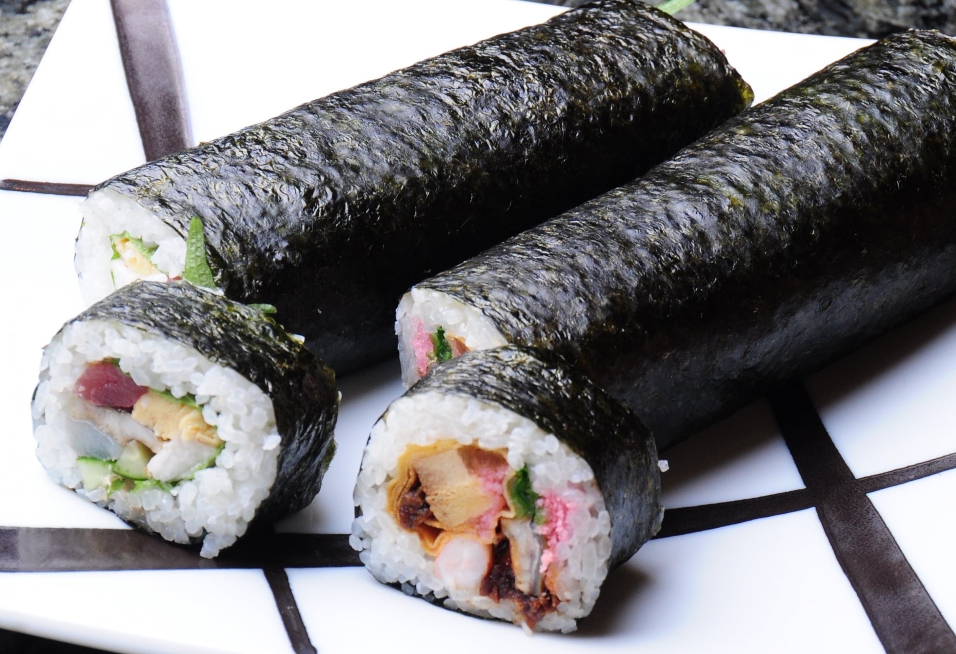 縁起をかつぎ、七福神にちなんで七種の食材でつくった恵方巻。