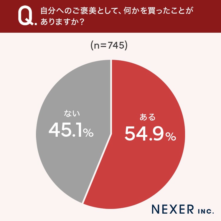 ■54.9%が、自分へのご褒美として何かを買ったことが「ある」