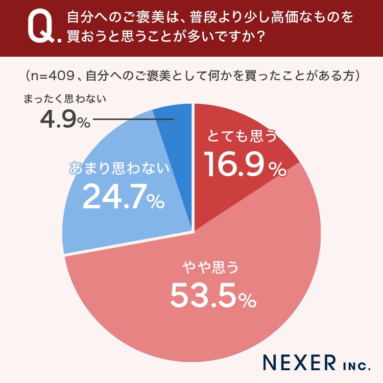 最後に自分へのご褒美は、普段より少し高価なものを買おうと思うことが多いか聞いてみました。