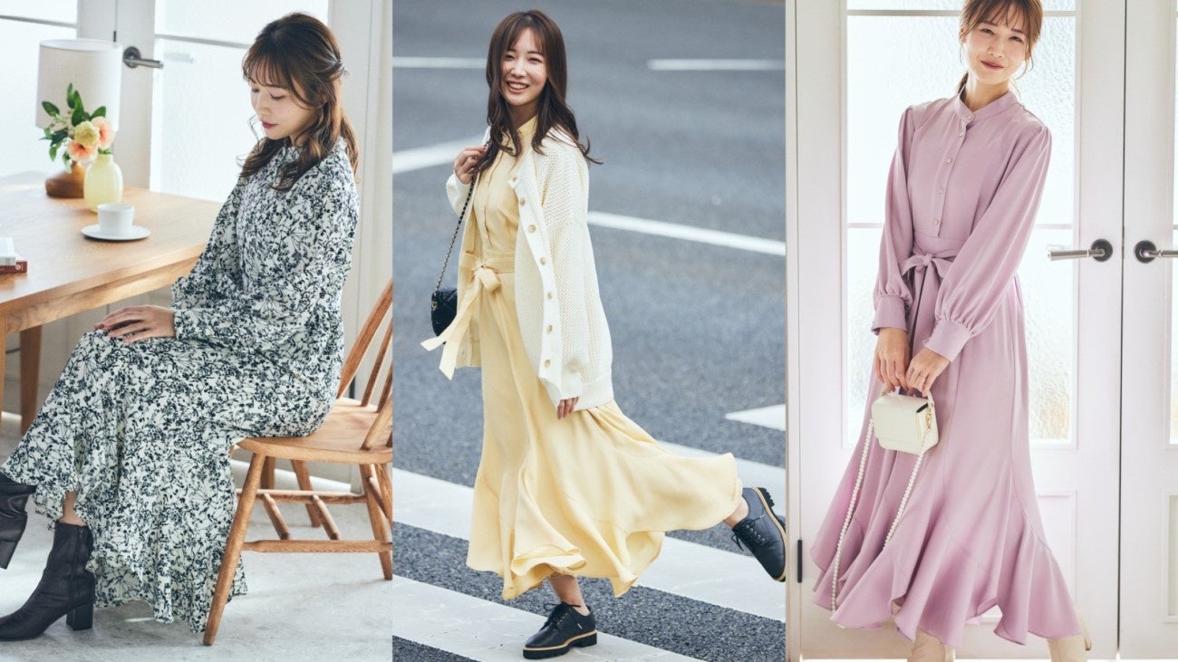 肌色を選ばないエレガントフラワーの3色展開です。ウエストマークと揺れる裾のデザインで着痩せ効果抜群のワンピース。袖口は内側だけゴム仕様にし、さっと袖をまくれるよう利便性にもこだわりました。
