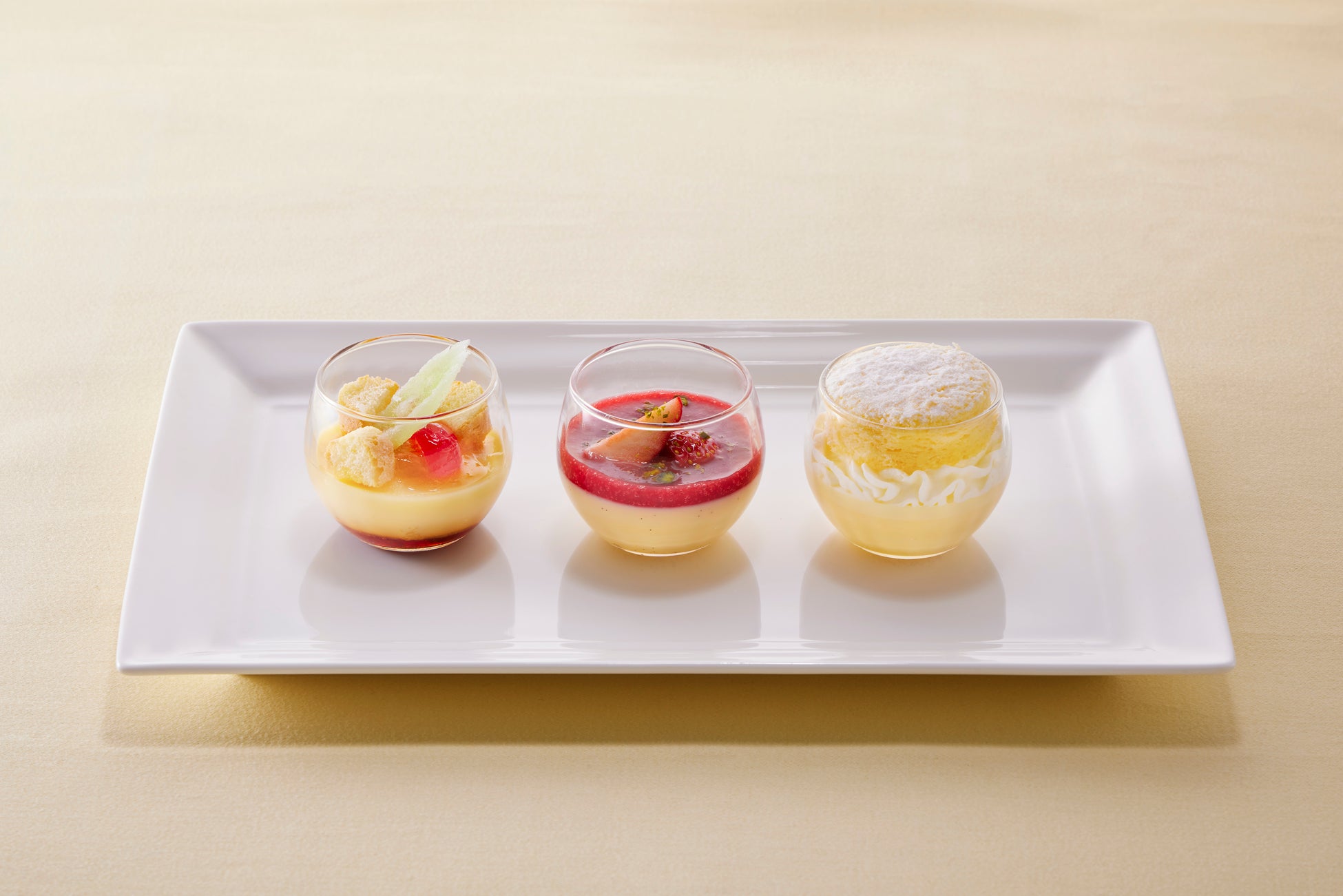 - <地元で愛されるホテル>をテーマに、現存する日本最古のリゾートホテルとして知られる「日光金谷ホテル」の人気メニュー「金谷プディング」の味わいをプチケーキで表現しました。