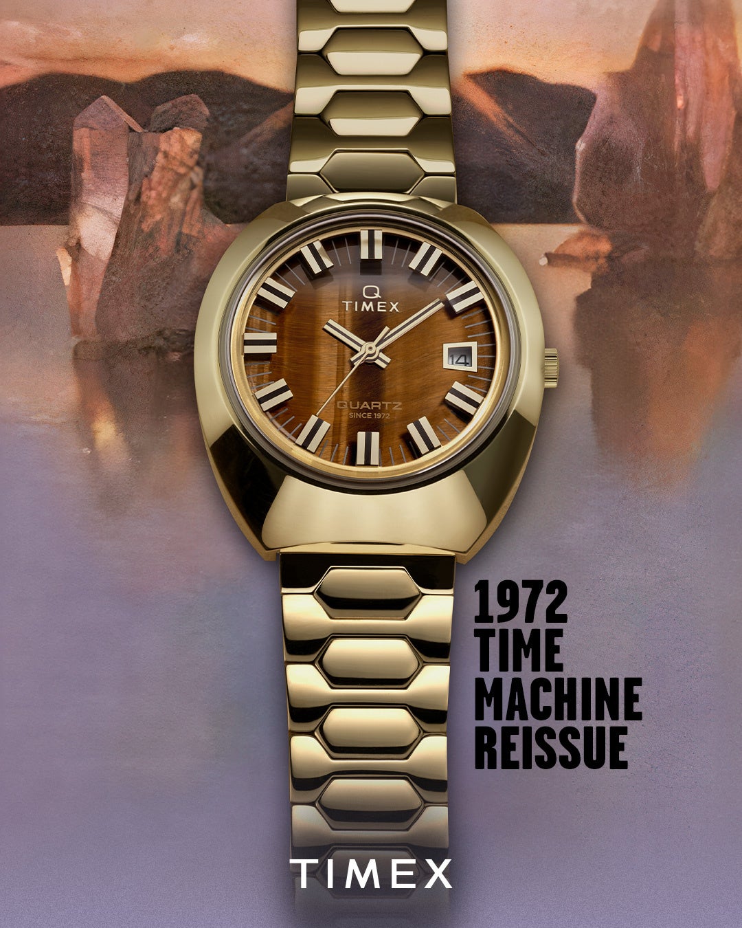 宙に浮かぶような“フローティングアワーマーカー”と、ノスタルジックな“タイガーアイ”が印象的!『Q Timex 1972 Time Machine Reissu』が、史上最も忠実に復刻。