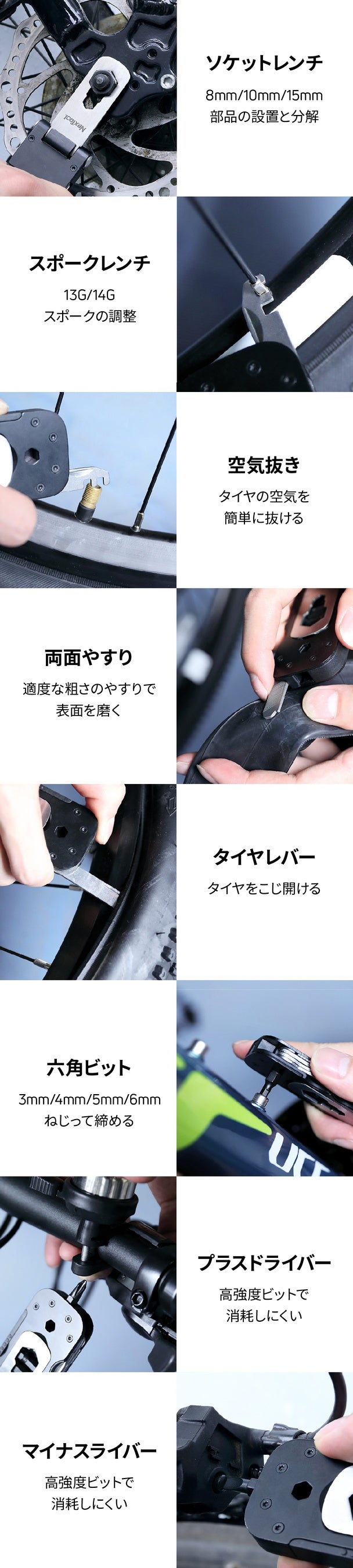 8つの機能が搭載されており、緊急時の自転車修理におすすめです。