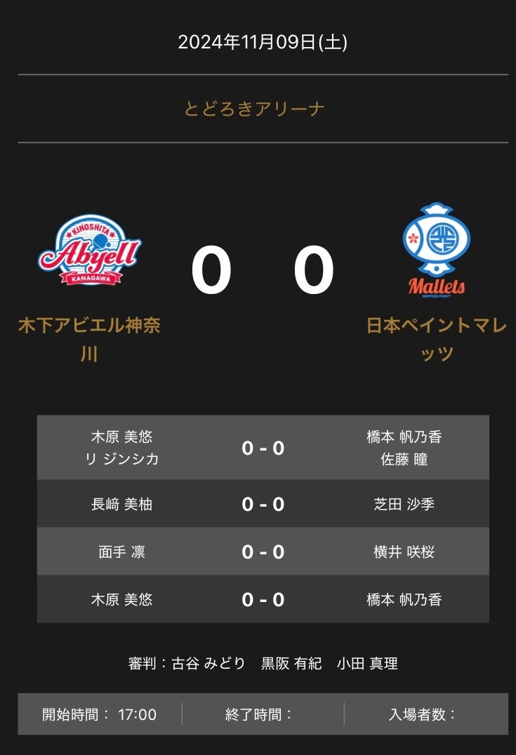 ノジマTリーグ 2024-2025シーズン 公式戦 11月9日開催 木下アビエル神奈川 vs 日本ペイントマレッツ 対戦オーダー発表