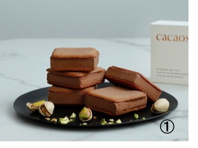 〈cacaosic〉①cacaosic pistachio (4個セット)1,576円、(6個セット)2,365円、(8個セット)3,153円、②生チョコレート ミルク (9粒)2,197円/地階 MAP③
