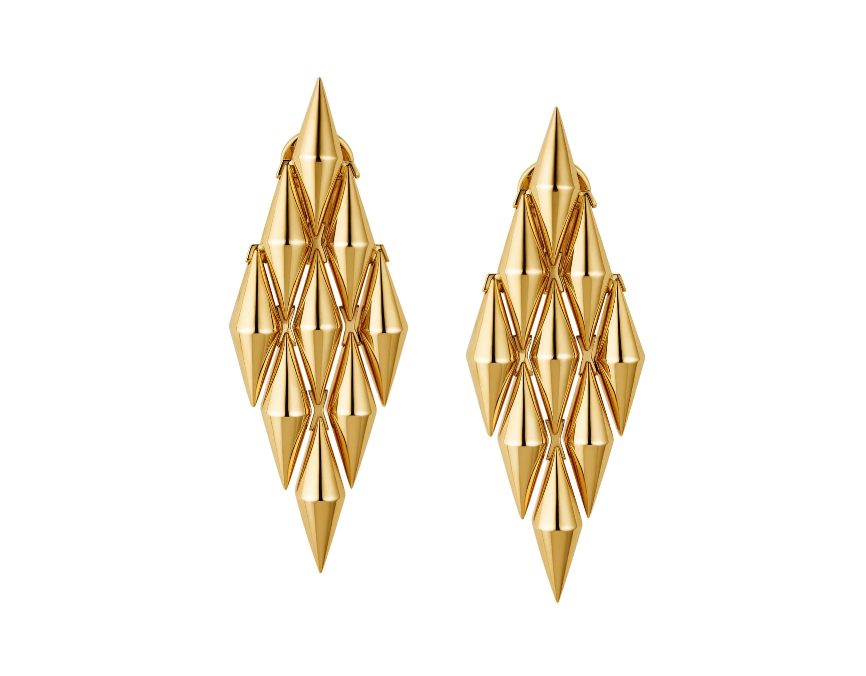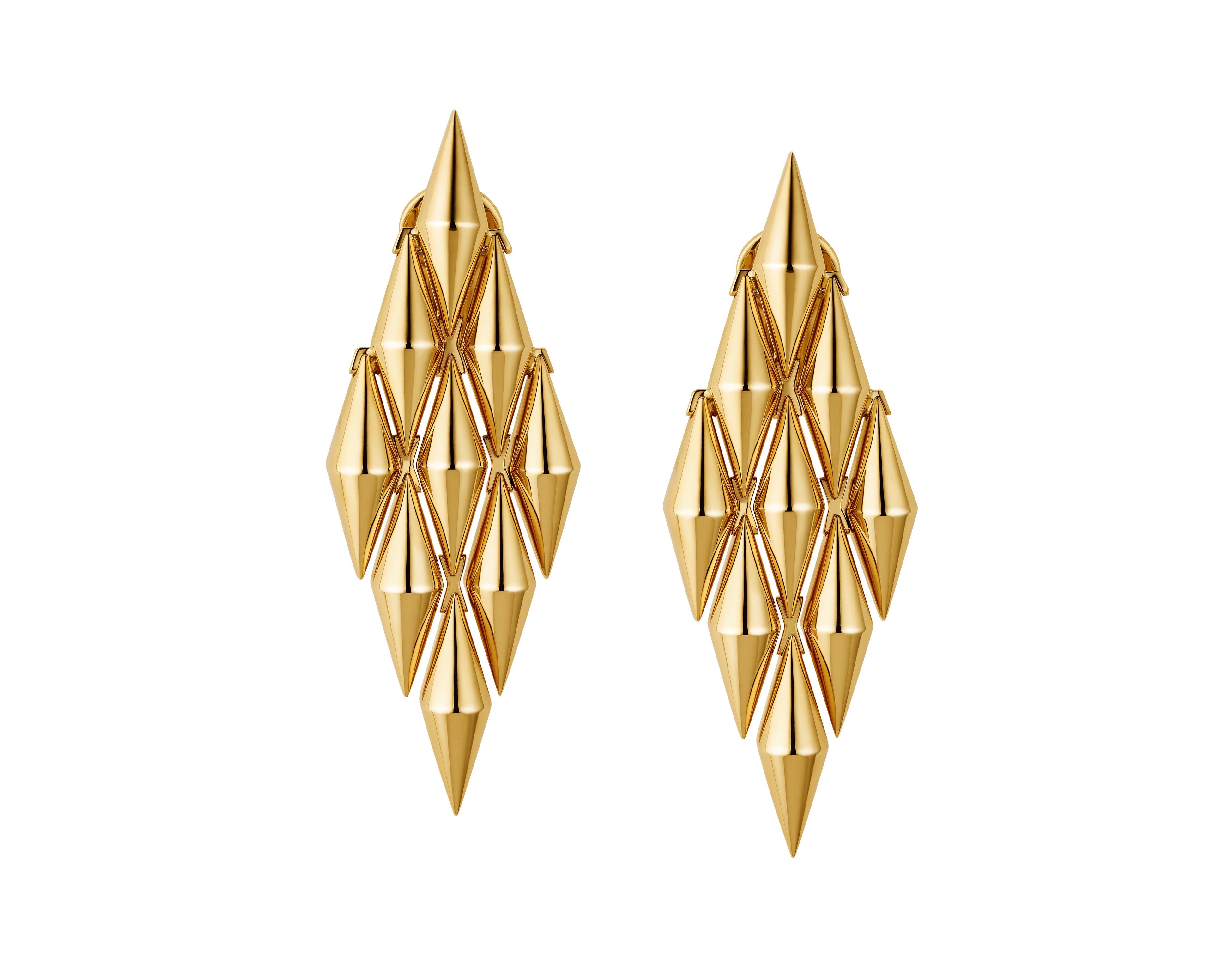 ピアスには、垂直性が表現されています。揺れるデザインに連結されたモジュール状のグリッドは、ブルガリを象徴するイエローゴールドの陽光のような暖かさを捉え、洗練されたイタリアン フレアを添えます。ユニークなイヤーカフは、ヴィミニの洗練されたモジュールそのものの大胆な魂を表現しており、時代を超えた精神を宿した必携アイテムです。