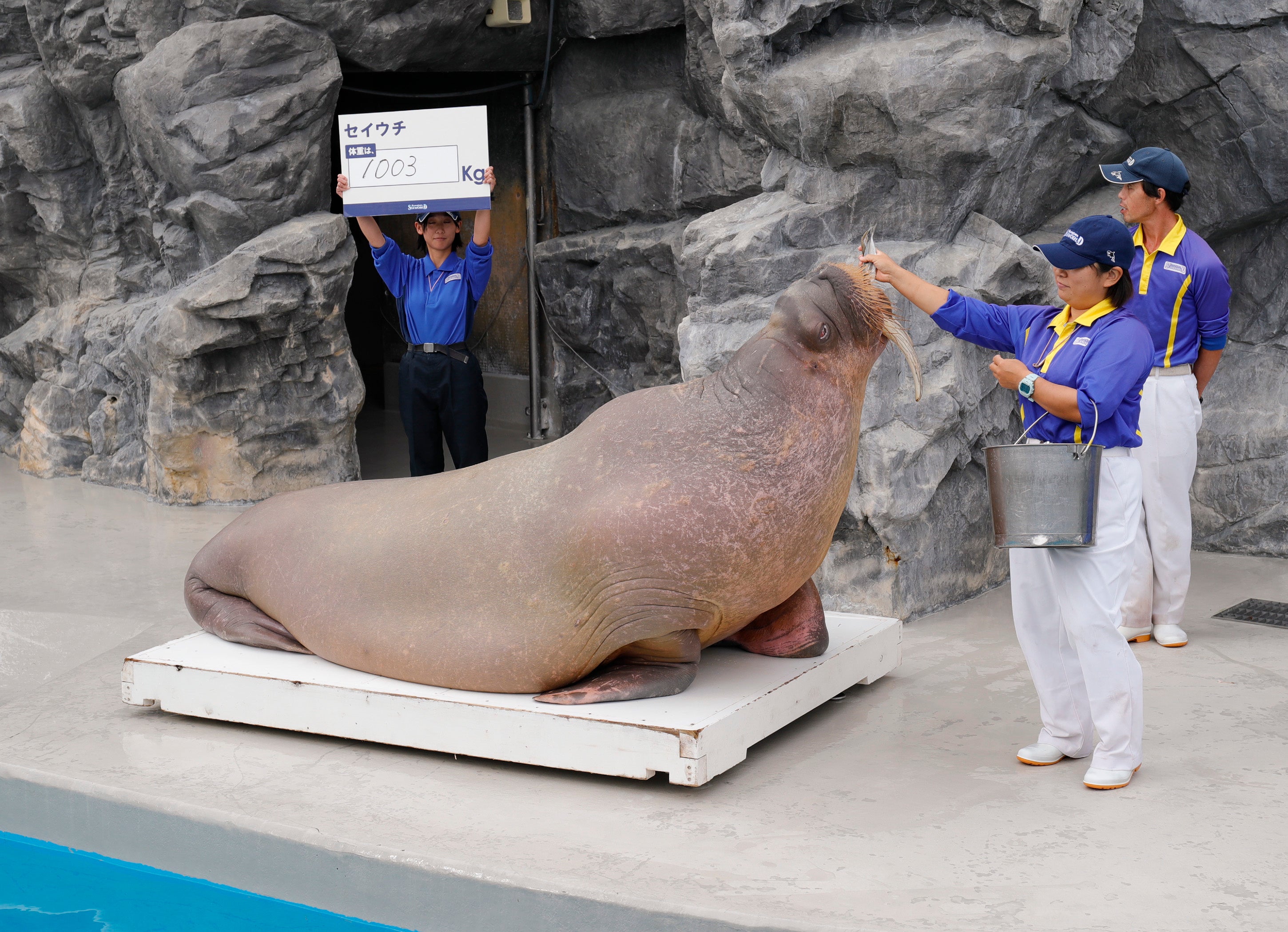 計量記念日にちなみバンドウイルカやセイウチなど体重測定の様子を公開!!