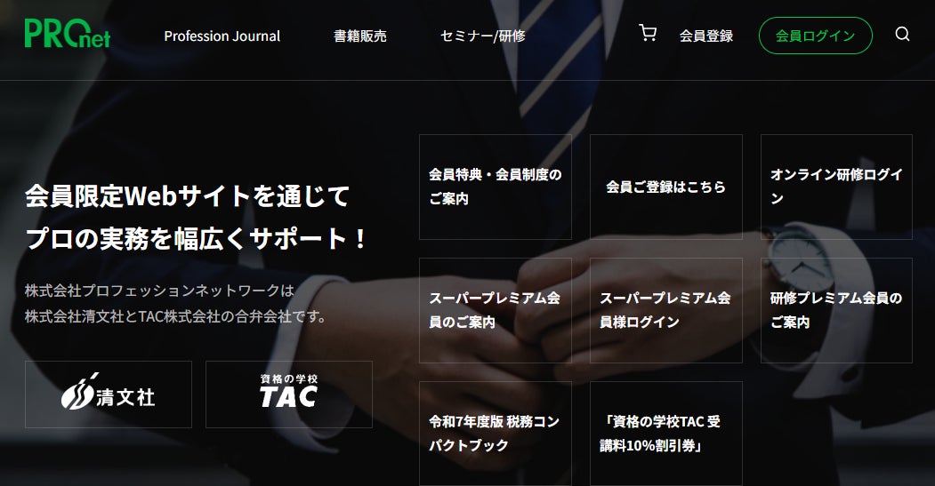 株式会社プロフェッションネットワーク(東京都千代田区、代表取締役:和田充弘)は、TAC株式会社(東京都千代田区、代表取締役:多田敏男)と株式会社清文社(大阪府大阪市北区、代表取締役:小泉定裕)の合弁会社です。