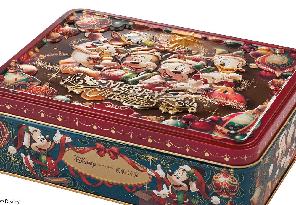 【東京ばな奈】2025クリスマス限定缶は、キラキラの飾りつけにいそしむ「ミッキー&フレンズ」デザイン!公式通販では先行予約を開始