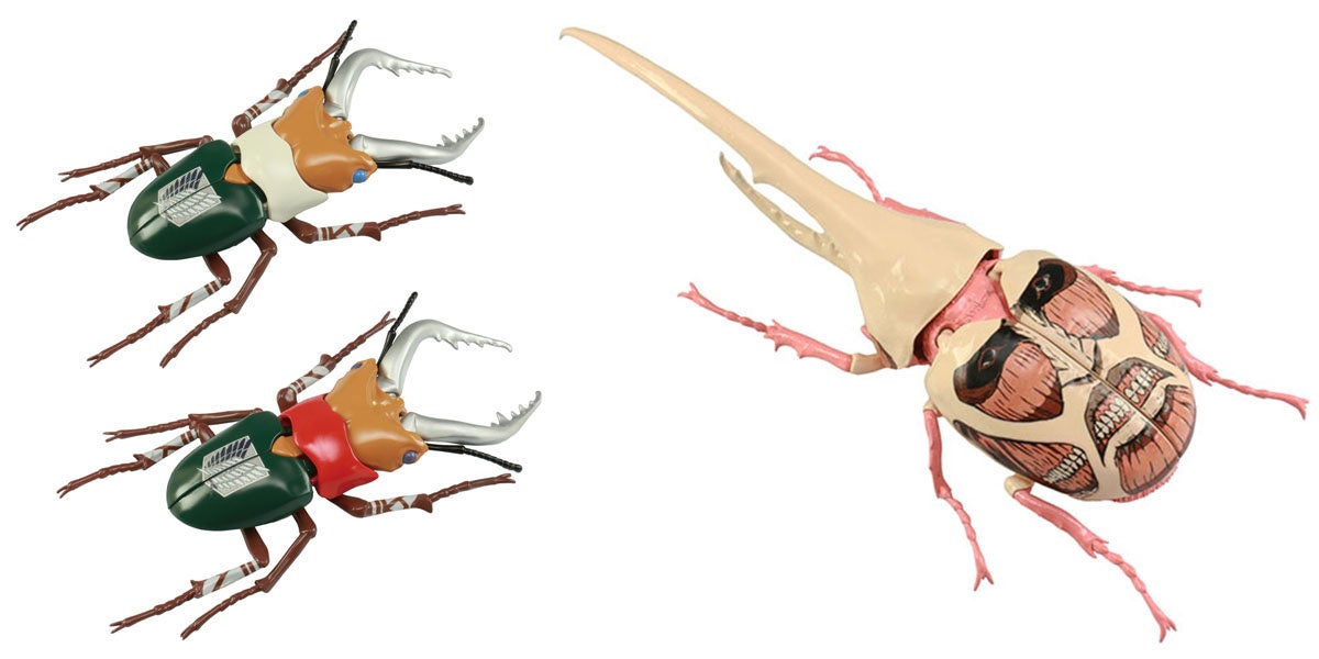 『進撃の巨人』より、キャラクターイメージカラー仕様のカブトムシやクワガタムシが、リアルな造形のプラスチックモデルキットになって登場。