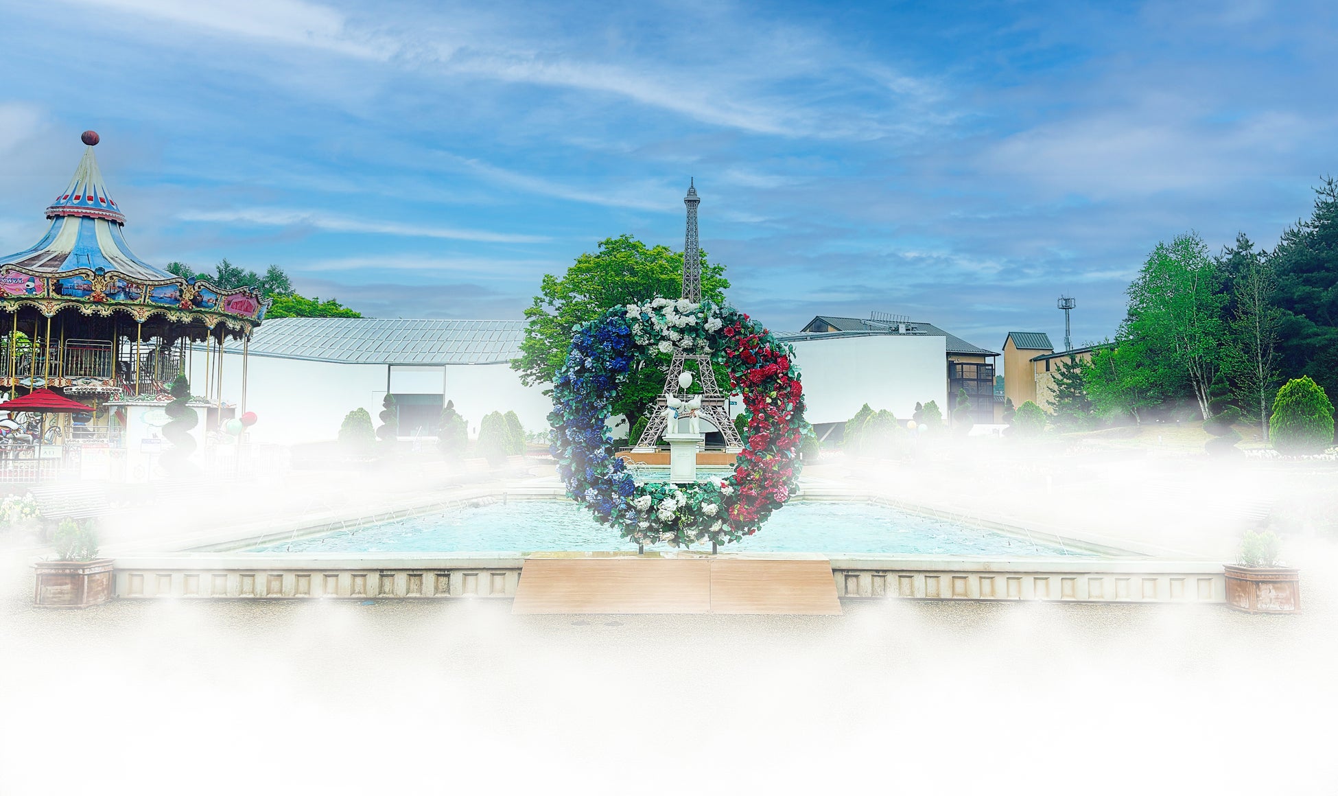 カラフルな花でトリコロールカラーに染まったフランス庭園では、ミストによる幻想的な雲海が広がります。ぜひお写真撮影やふわふわ涼体験をお楽しみください。