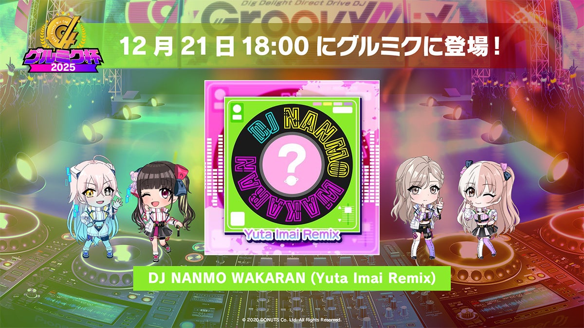 「グルミク杯2025」決勝戦の隠し楽曲で登場した「ハジマリビート(TAG Remix)」、「Get into the Abyssmare(かめりあ's "ULTRA ABYSSUM" Remix)」、エキシビジョンマッチにて登場した「DJ NANMO WAKARAN (Yuta Imai Remix)」の3曲が12月21日(日)18:00にグルミクに実装!