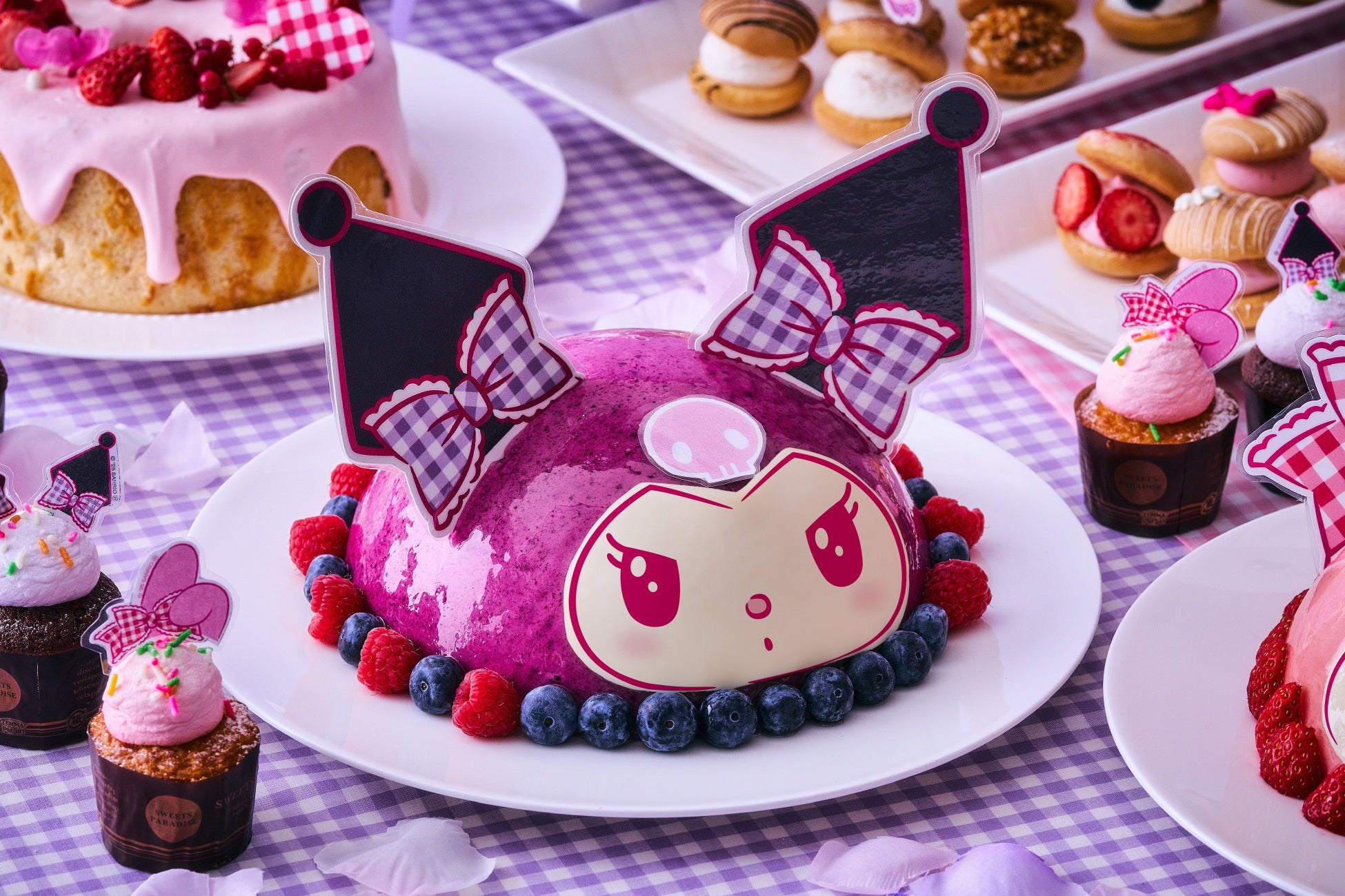 土日祝にご提供するスイーツビュッフェには、愛らしい表情をかたどったホールケーキや、ギンガムチェックとハートをアクセントにしたふんわり食感のシフォンケーキなどが登場。フルーツやクリームを色鮮やかに組み合わせ、ふたりの個性を表現したフォトジェニックなスイーツが揃います。またセイボリーは、クロミの好物であるらっきょうを添えたコク深い「KUROMI黒カレー」、黒大根や紅大根、黄にんじんにブラックカラーのドレッシングを添えた「クロミ化計画サラダ」など、遊び心あふれるメニューをご用意しています。