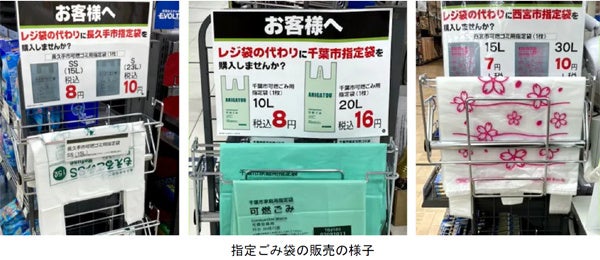 その一環として当社は、レジ袋の代わりに自治体指定のごみ袋を販売する取り組みを一部店舗にて展開していましたが、このたびごみ袋を指定する地域の店舗において、順次行政と連携し取り組みを拡大することとしました。