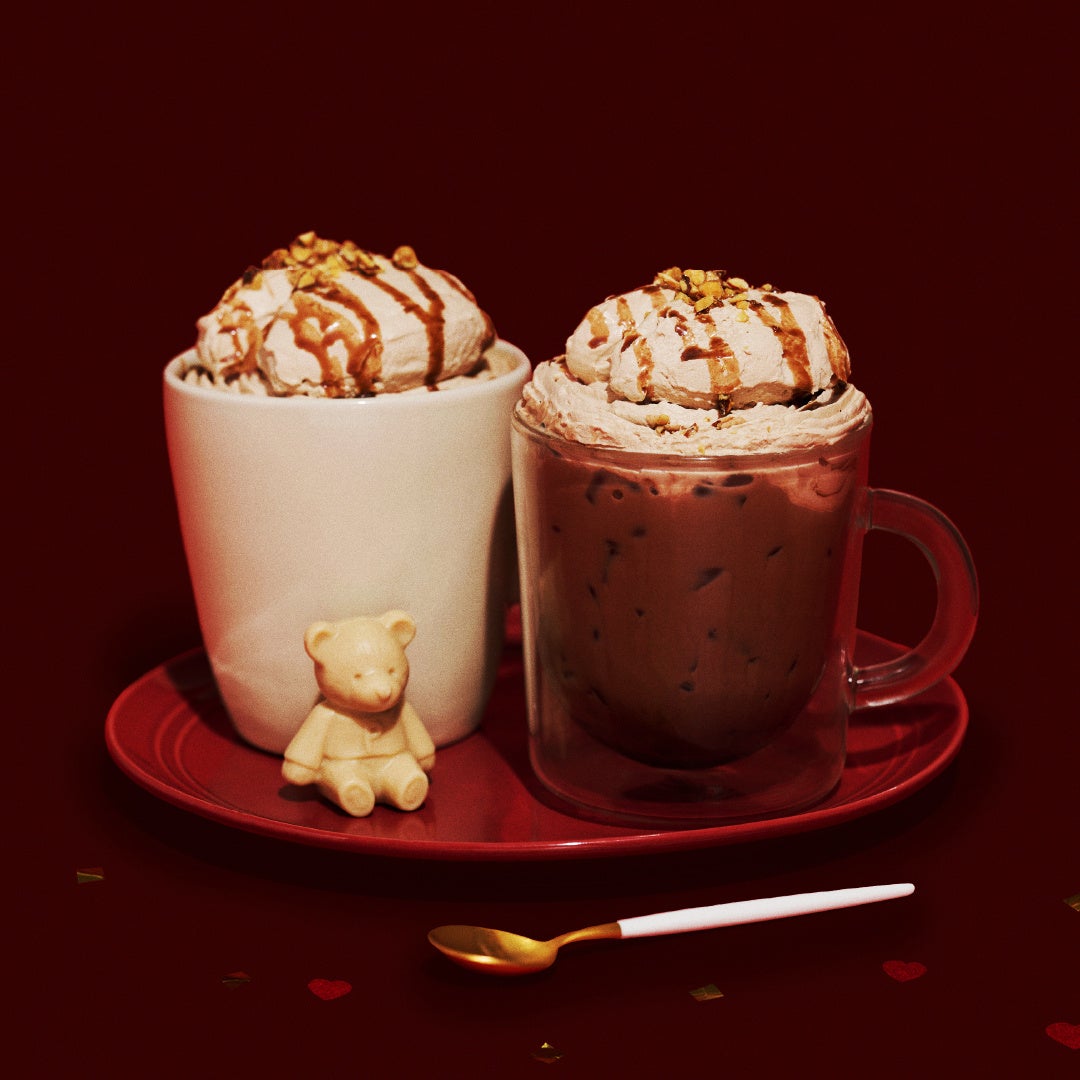 ピケカフェの今年のホリデーシーズンは、見ているだけで笑顔がこぼれるような可愛らしいベアチョコレートと赤いハートのチョコレートがポイントのクレープをご用意しました。