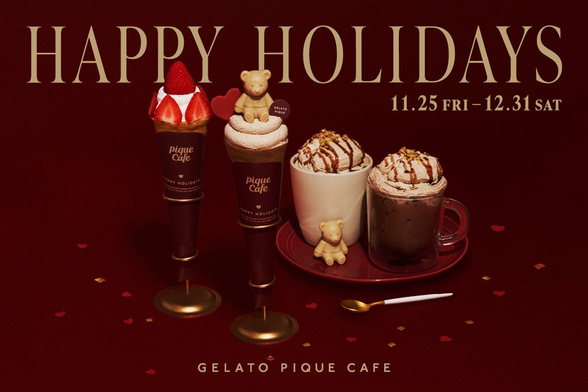 株式会社マッシュライフラボ(代表取締役社長:満塩雅一、本社:東京都千代田区)が運営するgelato pique cafe(ジェラート ピケ カフェ)では2022年11月25日(金)~12月31日(土)の期間限定で「HAPPY HOLIDAYS」と題し、季節限定のスイーツを3品発売いたします。