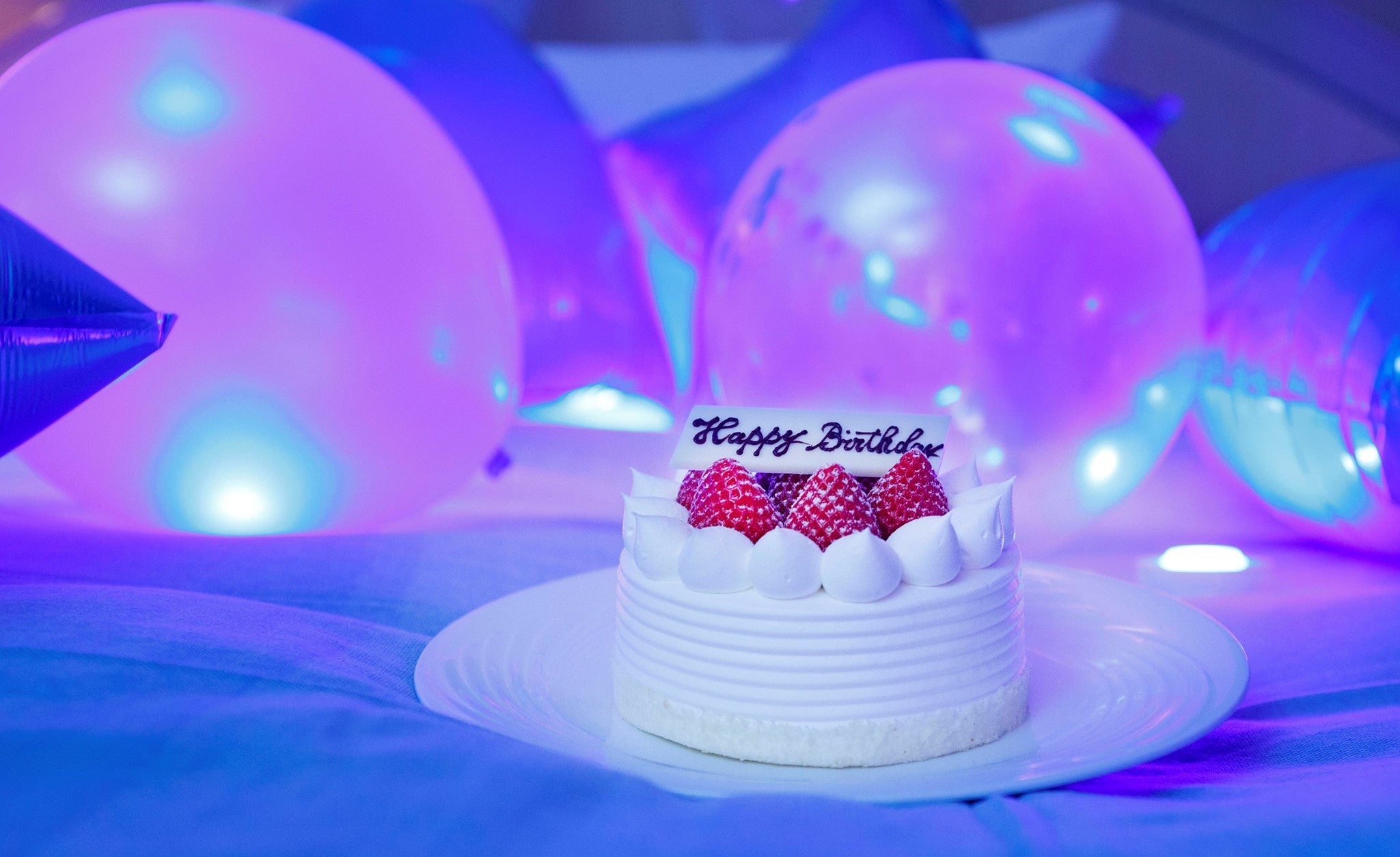 ※36平米から51平米のお部屋で気軽にご利用いただけるシンプルなプラン『あなたの推し活応援!~推しの誕生日はホテルでお祝い~』(1室2名さまご利用時¥21,600~)もご用意。DVD/ブルーレイプレーヤー、照明、ショートケーキ(4号/直径12cm)が含まれます。