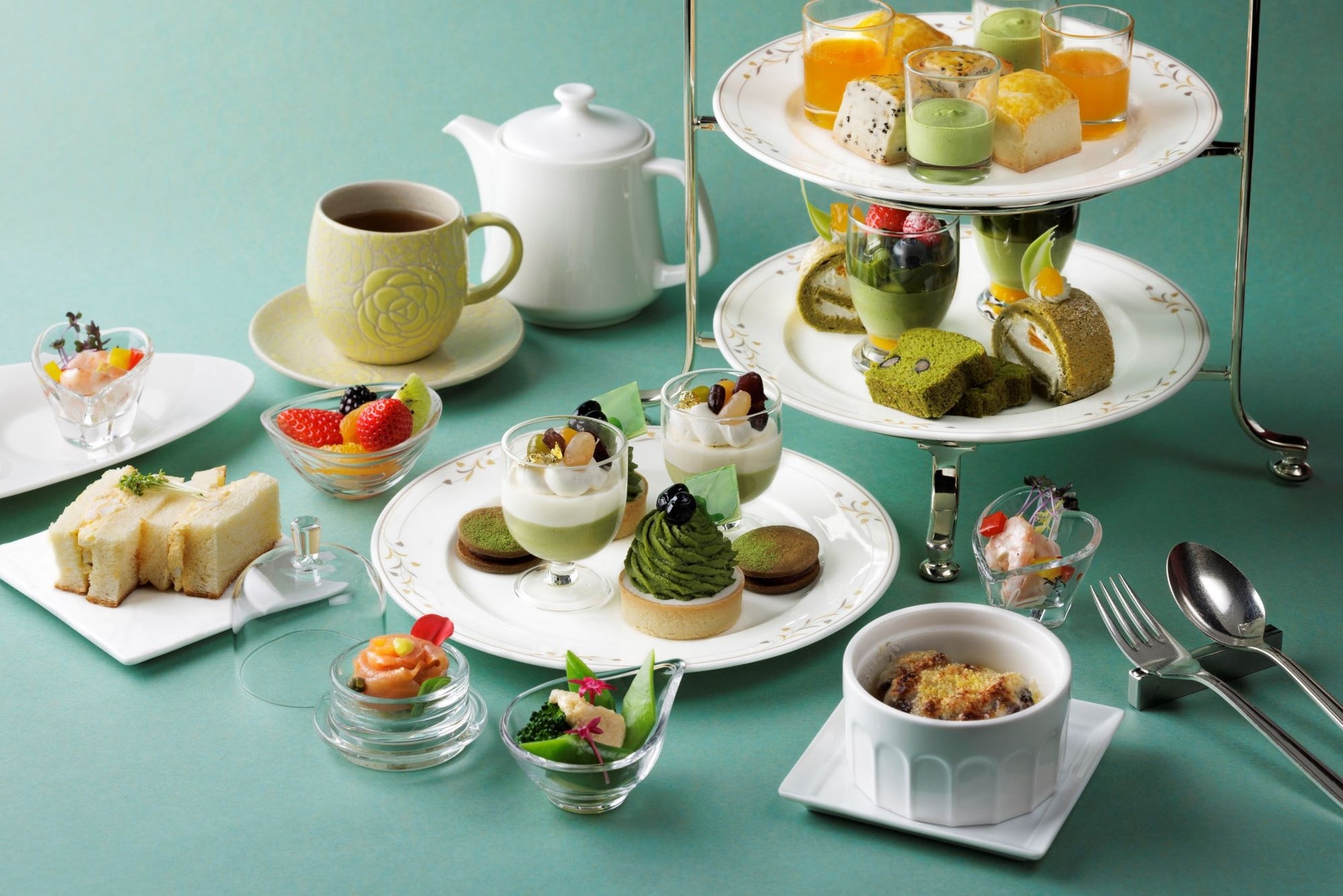 6種類の抹茶スイーツには、上品な香りと心地よい苦味が特徴の愛知県産西尾抹茶を使用。フルーツやクリームで酸味や甘味をプラスして、抹茶の美味しさを引き立てています。