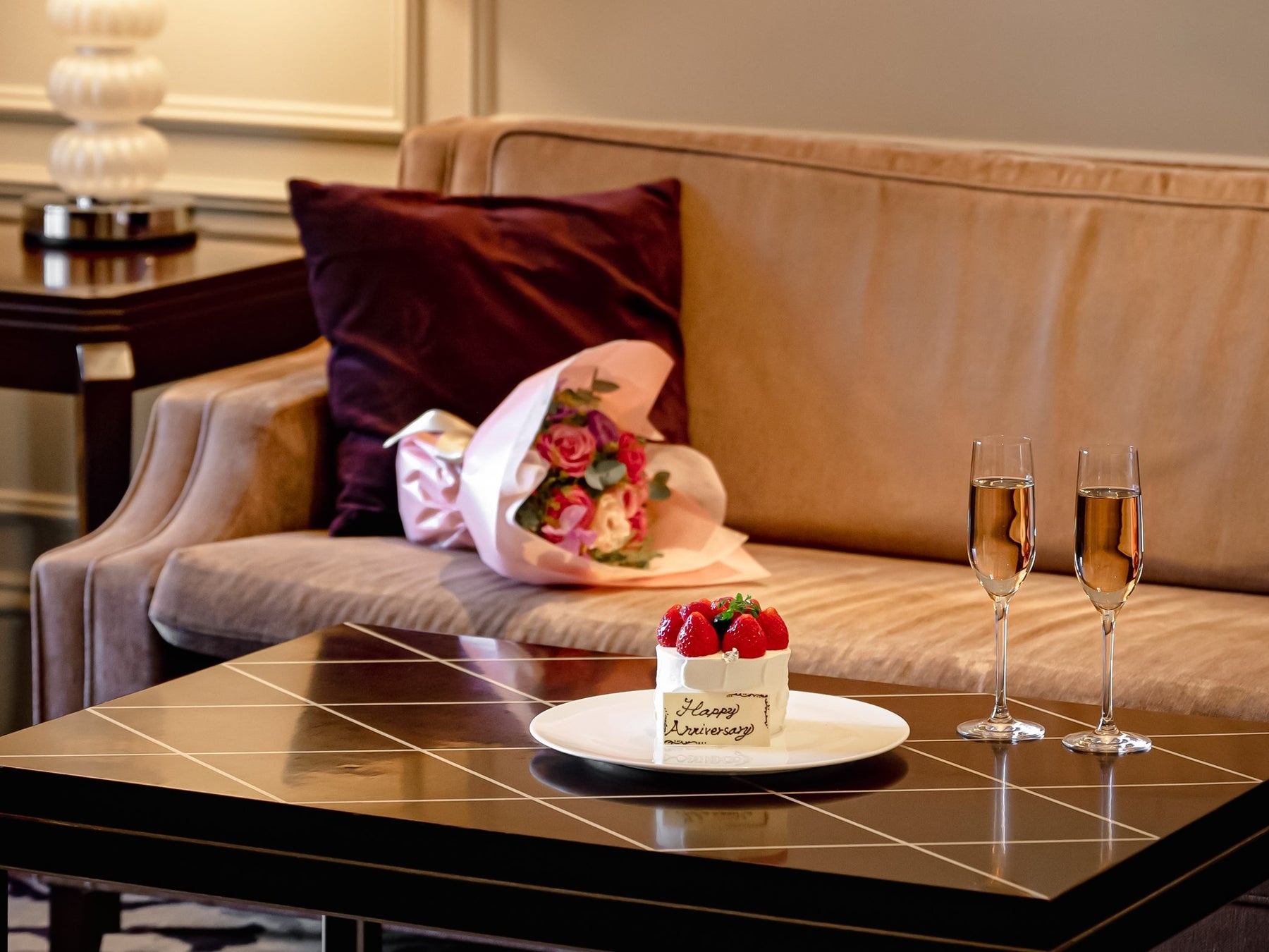 シャンパーニュや花束など、お好みのオプションアイテムでつくるオリジナルのアニバーサリープランです。大切な方と、記憶に残るひとときをお過ごしください。
