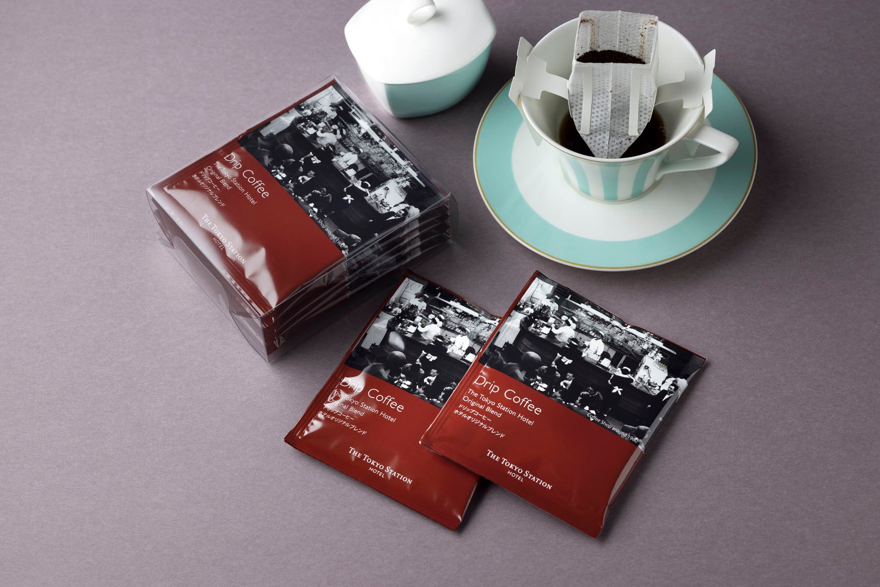 一年に一度、ありがとう!の気持ちを伝える「母の日」。東京ステーションホテル(所在地:東京都千代田区丸の内1-9-1)では、コンセプトカラーである濃藍色のオリジナルギフトボックスに、人気のホテルオリジナルフレーバーティーを詰め合わせた商品が、オンラインショップに新登場。通常は定番のアールグレイと2缶セットのところ、今回は初めてホテルオリジナルフレーバーだけを詰め合わせて、期間限定セットとしてご用意いたします。パリの高級紅茶店「ベッジュマン&バートン」とのコラボレーションにより誕生した、東京ステーションホテルだけの味わいを、この機会にぜひお楽しみください。1960年代に存在したコーヒーショップの写真をあしらったパッケージがお土産にもぴったりなドリップコーヒーもセットにしました。今回限定特典として、濃藍色のボックスにあしらわれているオリジナルステッカーと同デザインのカードも添えてお届けいたします。