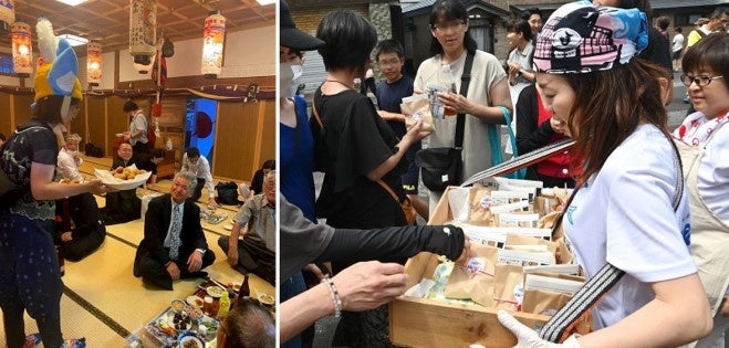 3年目となる今年度のキャンペーンのキックオフイベントとして「アゲ魚っ子ボールのふるまい」を、海の日のお祭り「大漁祈願祭」で賑わう神社前広場・シェアキッチンすてっぷで開催しました。