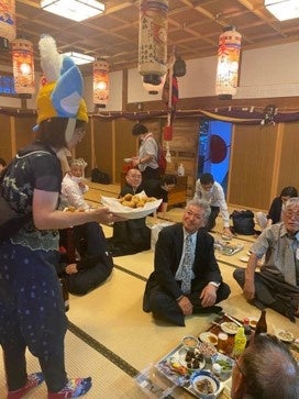 漁師町である大間にとって、海の日は大漁祈願祭が行われる特別で大切な日。前日に行われる宵宮の祈祷後には、大漁祈願祭の関係者へ突撃でアゲ魚っ子ボールをふるまいました。神社関係者・漁業関係者約40名が津軽海峡産のロクソクホッケを使っていることに関心を示し、「これはお酒のおつまみにも合うね」と高評価をいただきました。