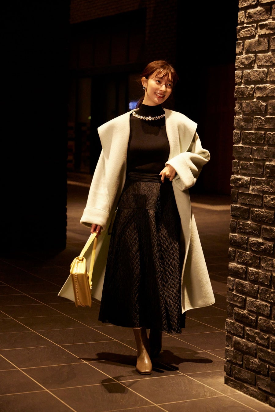 柔らかいミントカラーのコートを羽織ればさらに上品に。