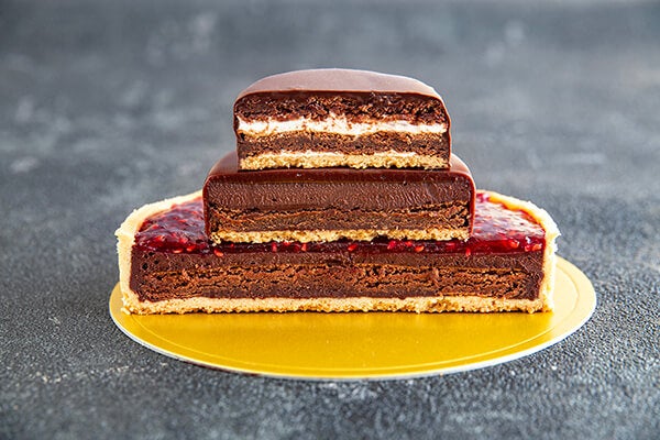 甘酸っぱいフランボワーズのガナッシュと木苺のジュレを重ねた「タルトショコラフランボワーズ」、カカオの風味豊かなクリームと艶やかなグラサージュが魅力の「タルトショコラノワール」、サクッとしたクッキー生地とくちどけの良いチョコレート生地でライム風味のギモーヴをサンドした爽やかな「タルトショコラシトロンヴェ