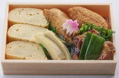 春を告げる筍と菜の花を盛り込んだいなり寿司のお弁当です。