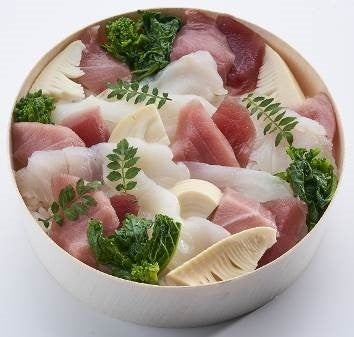 春の旬の魚(真鯛、さより、小鯛の笹漬け)に、おすすめ本マグロが入った季節限定のちらし鮨です。