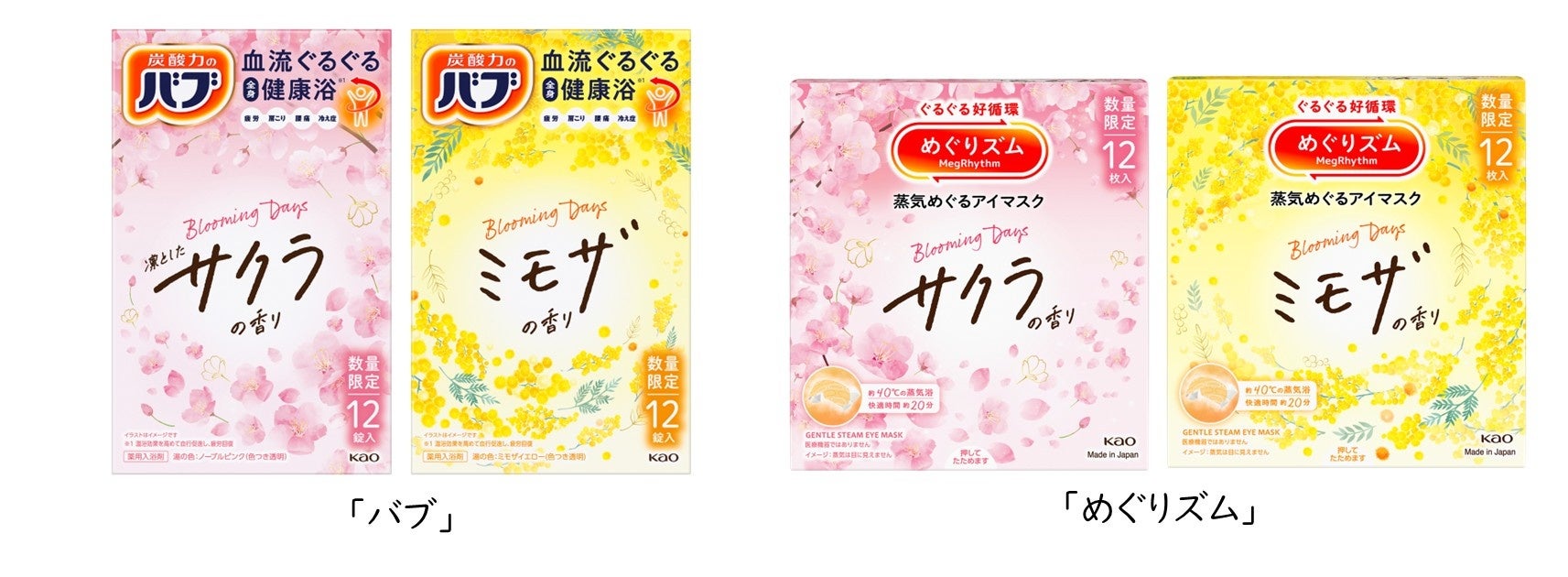 花王株式会社パーソナルヘルス事業部ホリスティックヘルスケアグループは、2026年1月17日に「バブ」と「めぐりズム 蒸気めぐるアイマスク」から2つの香り(サクラの香り、ミモザの香り)を数量限定で発売します。