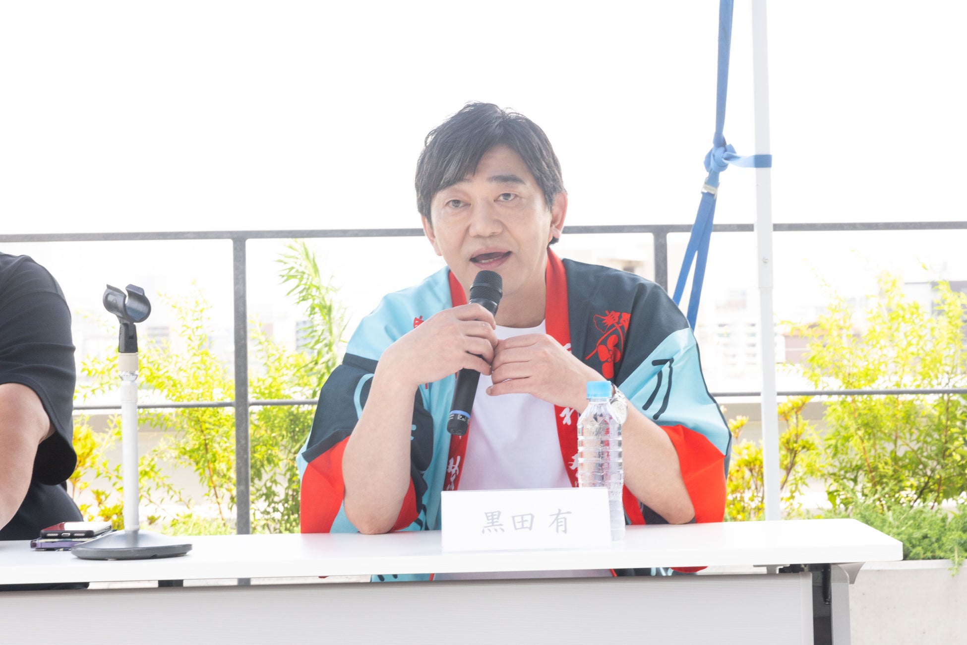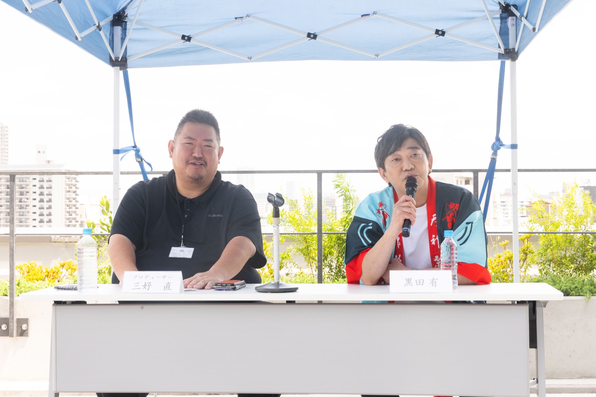 これに先立ち、7月17日(水)、テレビ大阪新社屋の屋上で『天神祭生中継2024』発表記者会見が行われ、黒田有とプロデューサーの三好直が出席。記念すべき40回目の『天神祭生中継2024』への意気込みを語った。