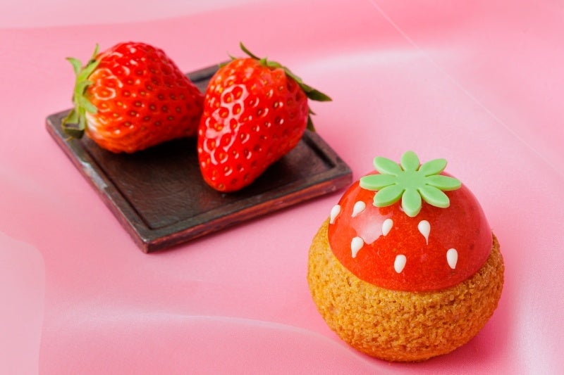 イチゴの食べ比べには、奈良県産の「古都華」と近鉄百貨店直営はるちかファームで栽培した「はるかすまいる」をご用意し、それぞれの味・香りの違いを感じていただけます。可愛いカワウソのプティガトーや茶筅に見立てたマカロンなど、パティシエの細かなこだわりもご一緒に楽しんでお召し上がりください。