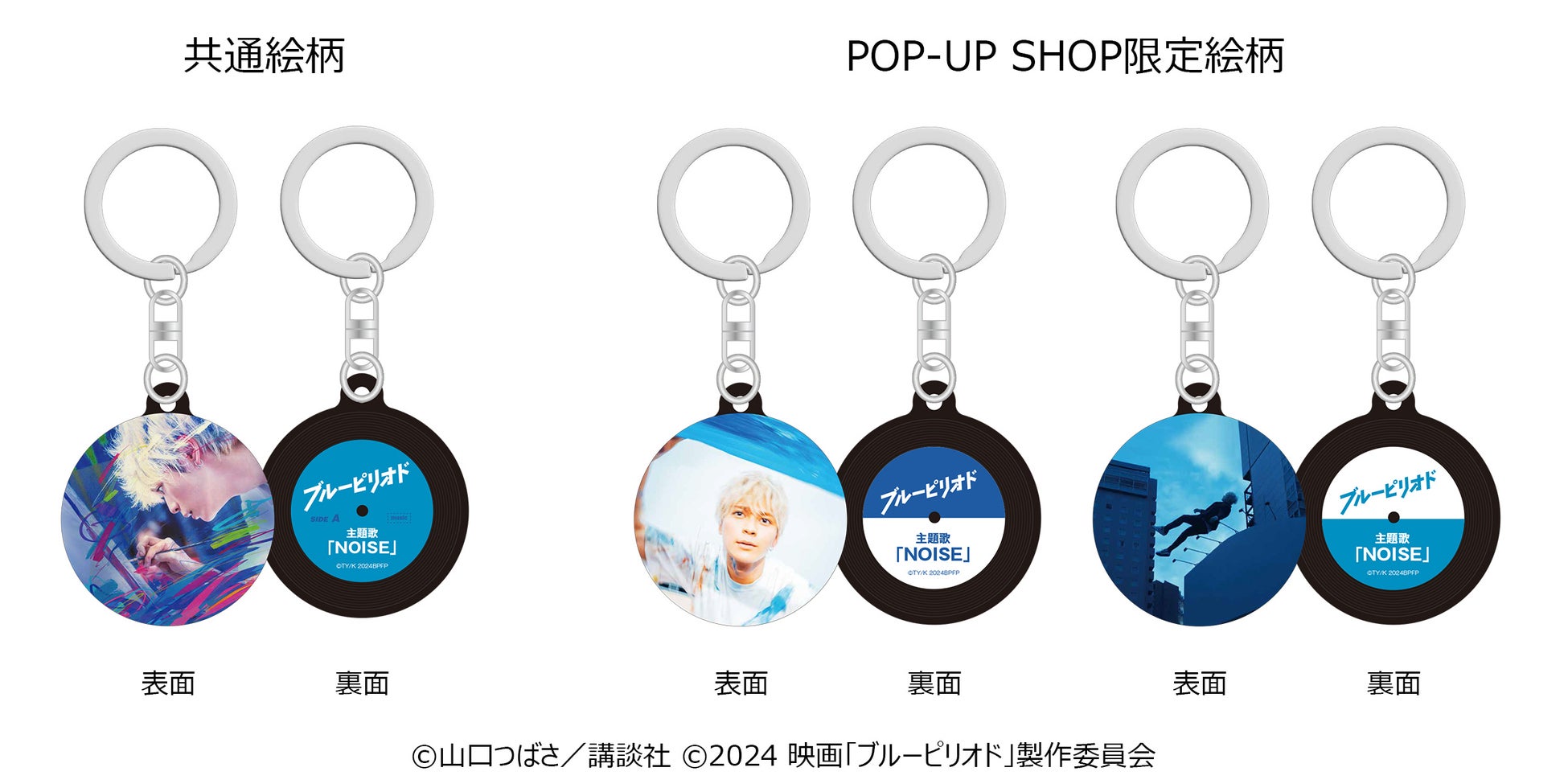映画『ブルーピリオド』ミュージックキーチェーンは7月24日(水)から原宿竹下通りにあるUNIVERSAL MUSIC STORE HARAJUKUで開催されるPOP-UP SHOPとユニバーサル ミュージック公式通販サイトUNIVERSAL MUSIC STOREで限定絵柄(2種)含む3種が販売される。映画『ブルーピリオド』が公開となる8月9日(金)以降は一部の上映館・CDショップ・ECサイトでも販売される。価格は税込みで2,000円。