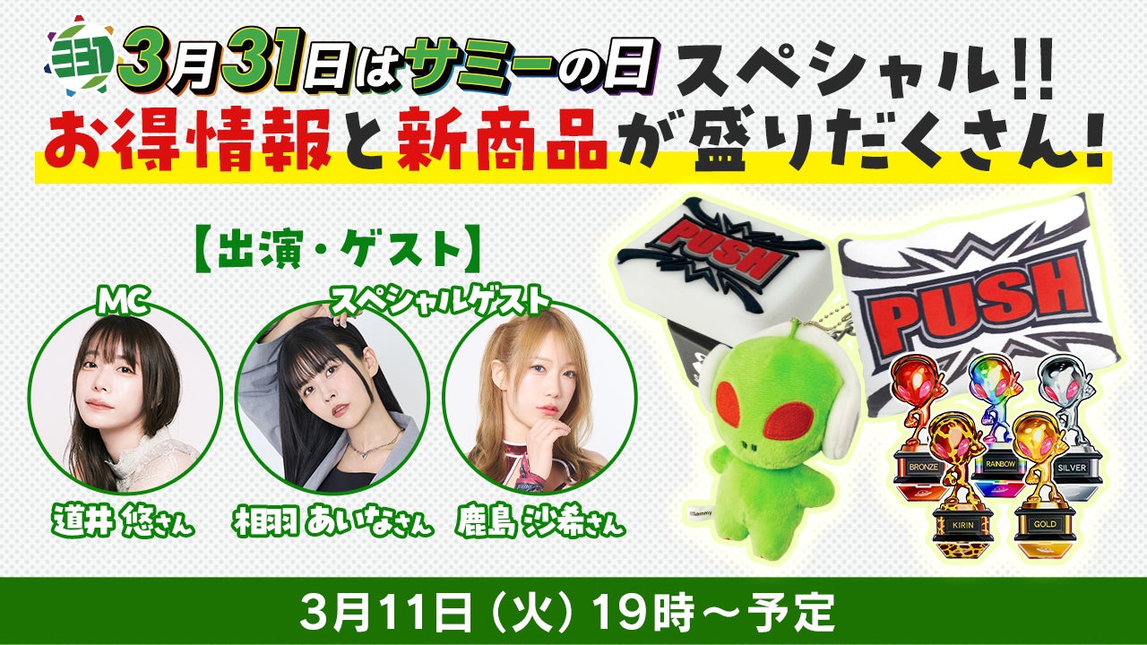 株式会社サミーネットワークスが運営するサミー公式グッズショップ"サミー商店オンライン"は、2025年3月11日(火)より、サミー商店のライブコマース配信"サミー商店OnLive"を開始いたします。