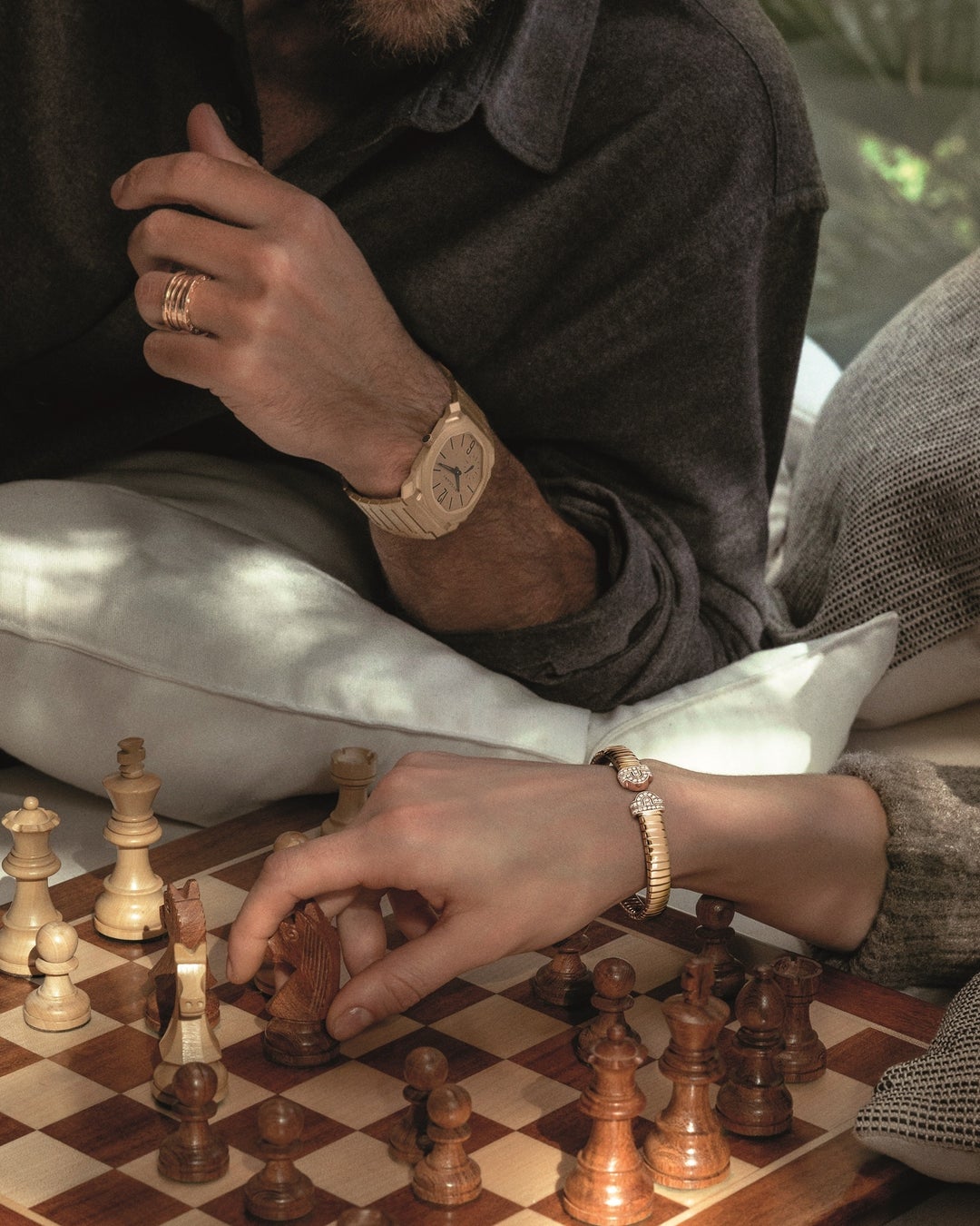 ブルガリのタイムピースは、時間そのもののリズムを通して愛を称えます。「セルペンティ トゥボガス」は、しなやかでうねるようなデザインでメゾンのジュエリーのサヴォアフェールを体現しています。そして、「セルペンティ セドゥットーリ」は自社製の自動巻きムーブメントが搭載され、ウォッチメイキングの専門技術とブルガリのジュエリーにおけるDNAを融合させています。「オクト フィニッシモ オートマティック」は、モダンなモノクロームのチタンケースとブレスレット、そして極薄の機械式ムーブメントを特徴とする、今日のウォッチメイキングの大胆な表現として存在感を放ちます。
