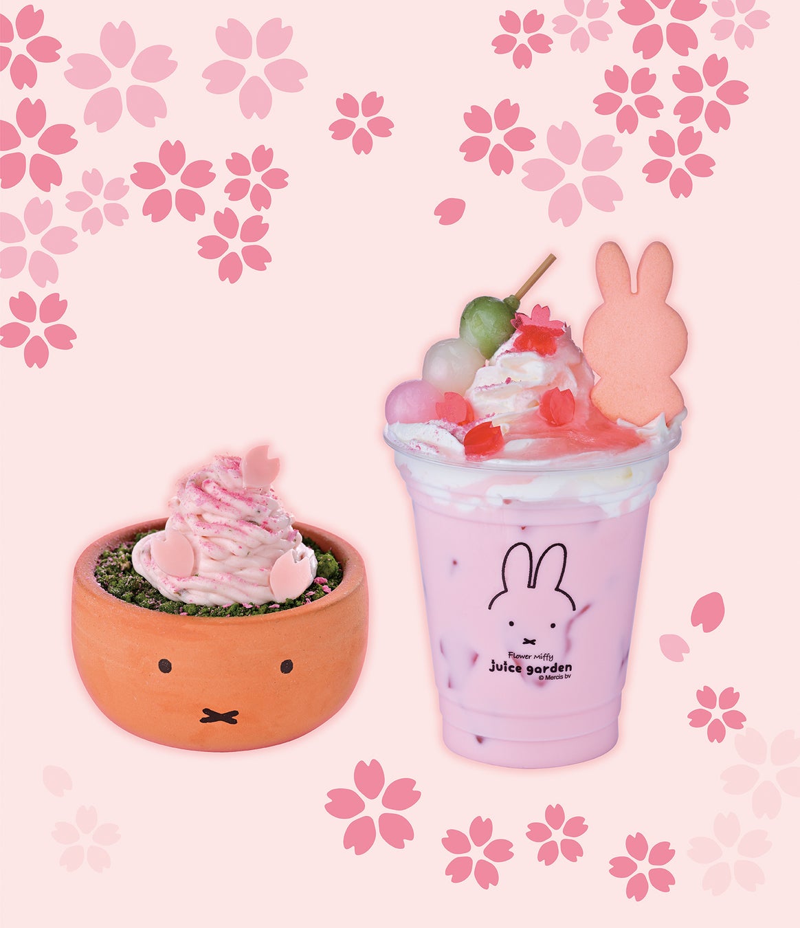 人気絵本ミッフィーのお花屋さん「フラワーミッフィー」がお届けするドリンクスタンド「フラワーミッフィー ジュースガーデン」より、さくらといちごの風味が楽しめる期間限定ドリンクとスイーツが登場