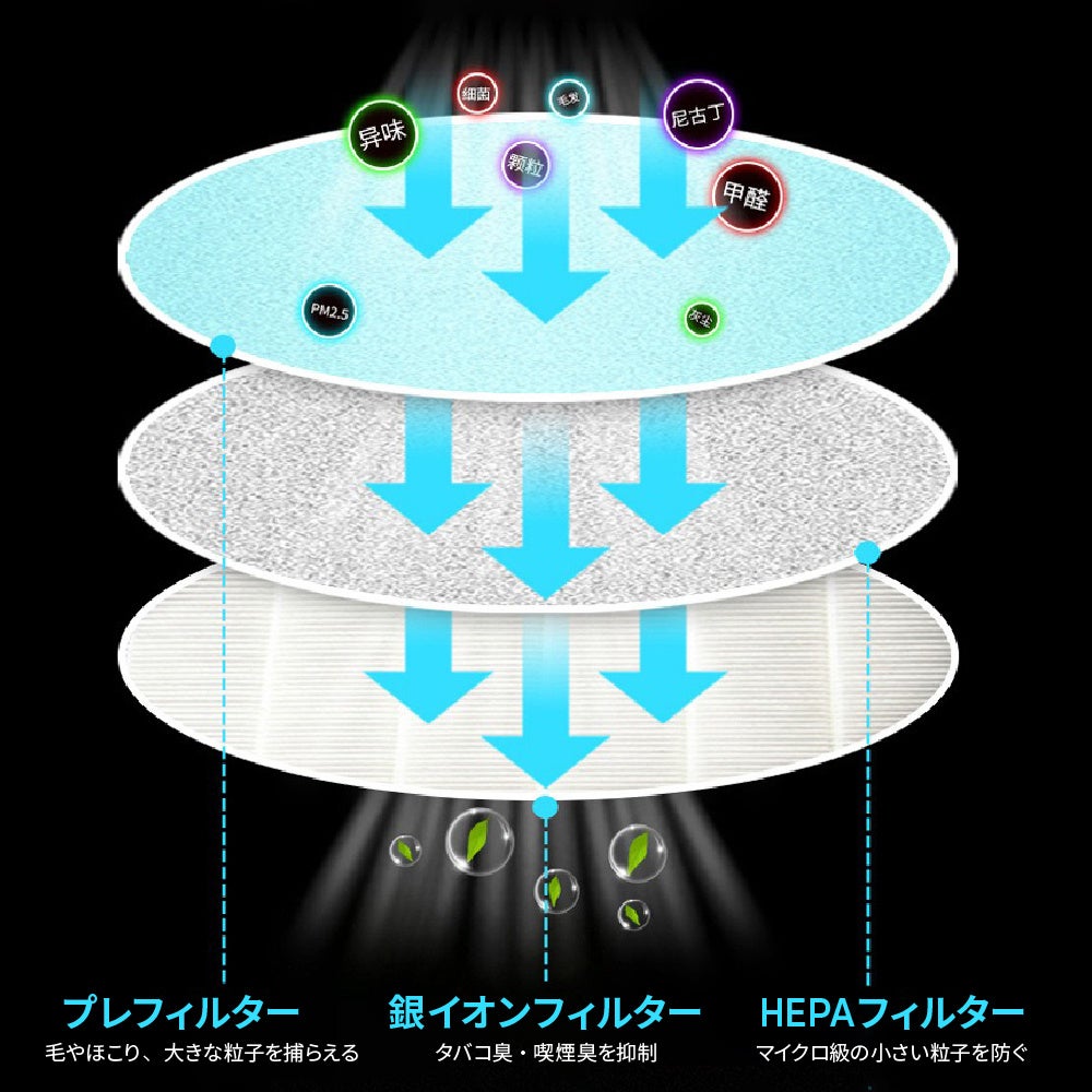 高性能フィルターが空気を浄化し、マイナスイオンを放出します!