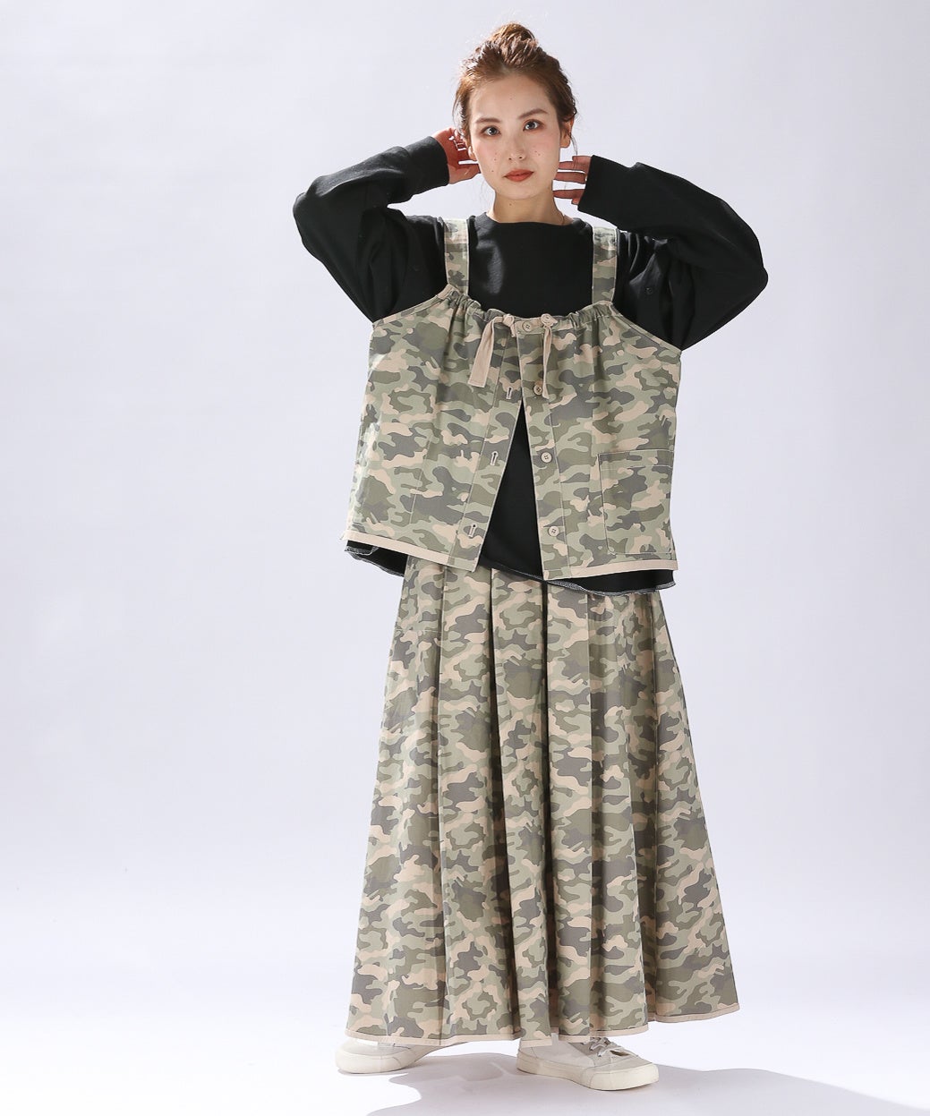 今回の企画では、3人の共通点である、ミリタリーがテーマであったことから、初の試みとして、3人で1つの洋服を企画しています。ライフステージやテイストの異なる3人が1つの洋服を企画したことで、いろいろなスタイルに取り入れやすい、リバーシブルのベスト・スカートと、袖が取り外し可能なプルオーバーが完成しました。