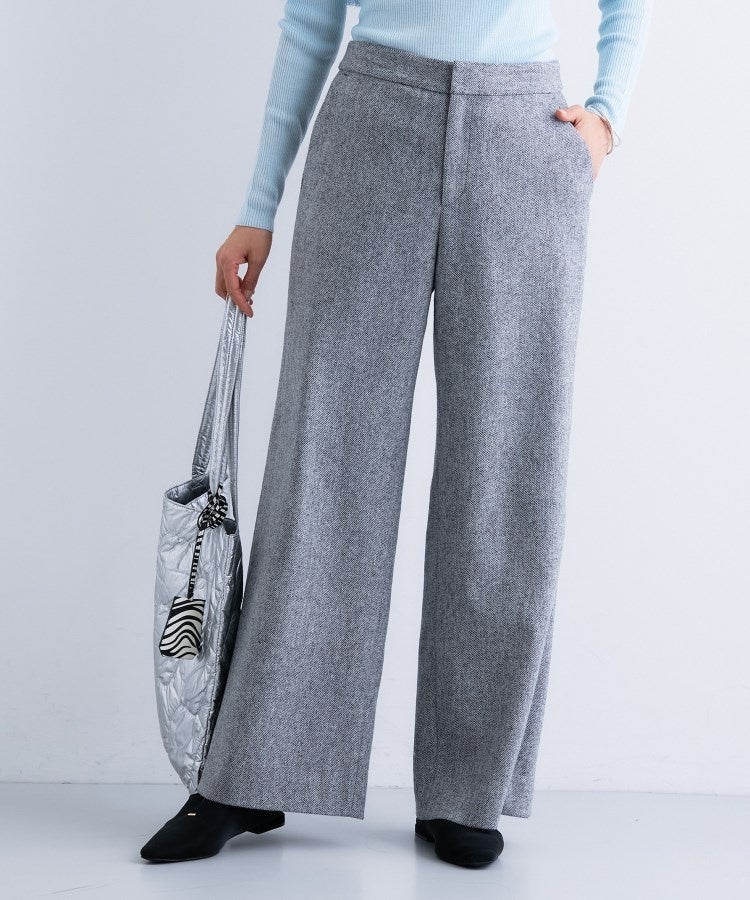 のパターン。日本国内で紡績されたリサイクルウールを使用し、環境に配慮したストレッチツイード素材で快適なはき心地を実現しました。