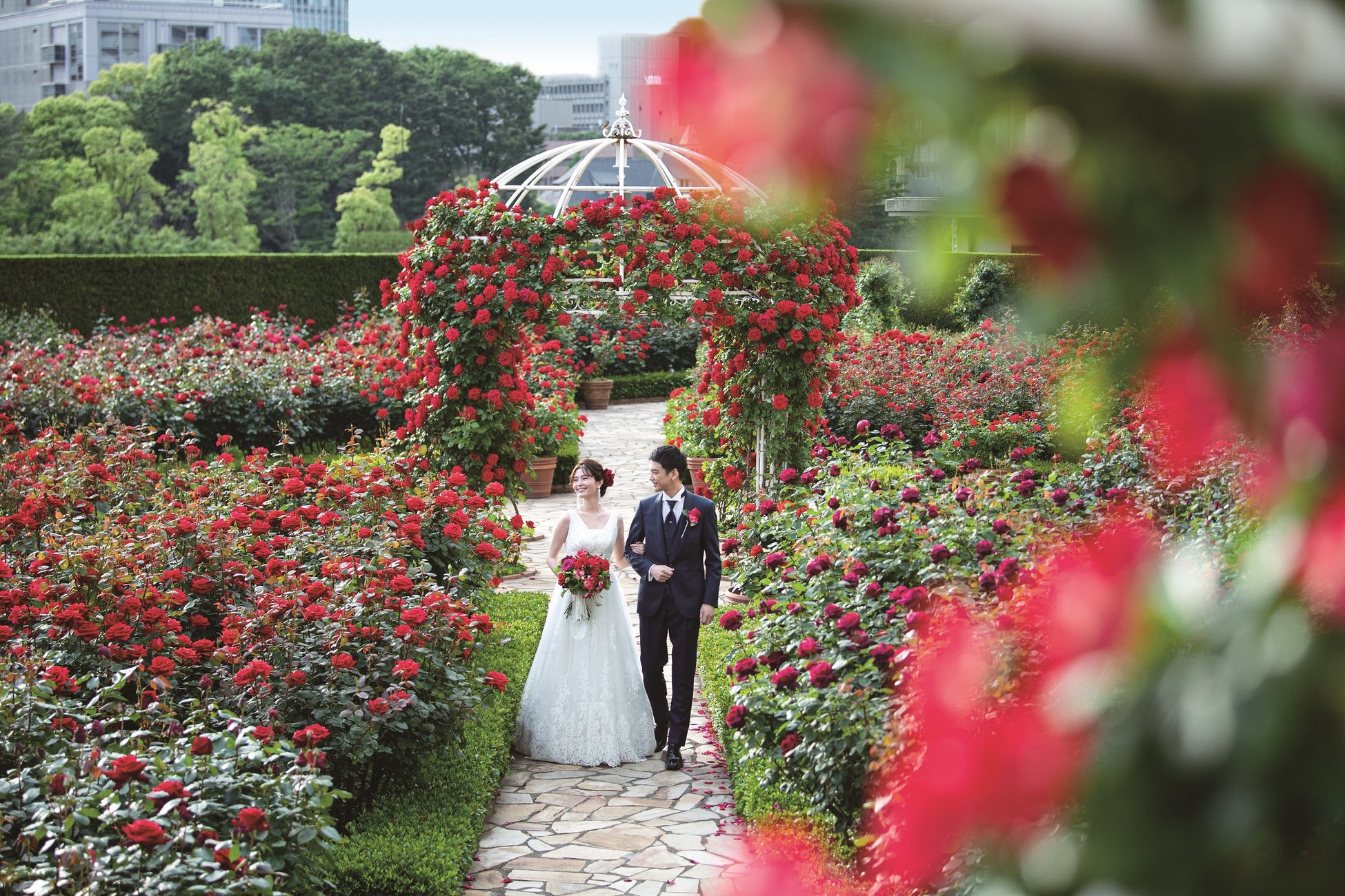 ホテルニューオータニは、 32種3万輪の真紅のバラが咲き誇る季節限定チャペル「レッドローズガーデン」での模擬挙式付きウエディングフェアを、 2022年5月7日(土)に限定開催いたします。