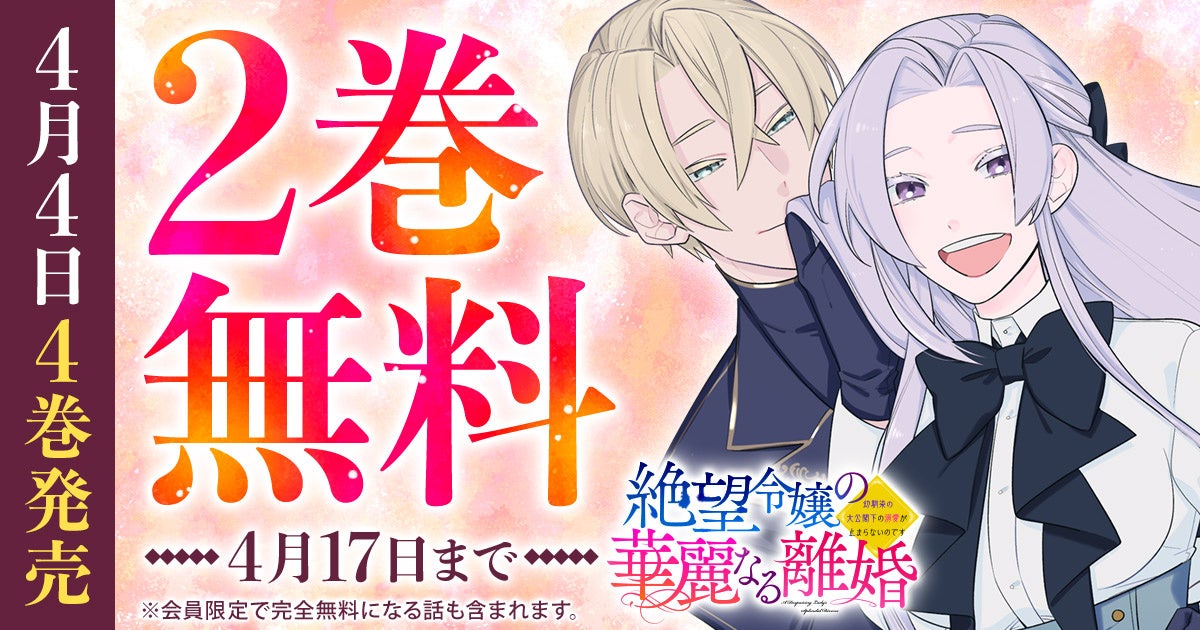「絶望令嬢の華麗なる離婚~幼馴染の大公閣下の溺愛が止まらないのです~」原作:高槻和衣 作画:馬籠ヤヒロの最新4巻発売を記念してヤングアニマルWebにて2巻無料キャンペーン実施!!