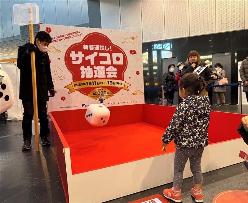 本イベントは、大きなサイコロ2個を振った出目の合計数に応じて、「ホテルグランヴィア京都レストラン食事券2万円分」など、商品券やお食事券が当たる新春恒例の人気イベントです。小さなお子様から大人の方までご参加いただける体験型イベントですので、ぜひ新年の運試しにサイコロ抽選をお楽しみください。