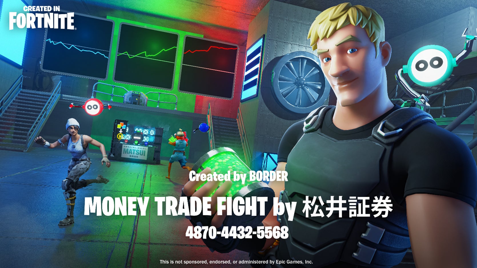*2「MONEY TRADE FIGHT by 松井証券」 は Epic Games, Inc. によってスポンサー、承認または管理されているものではありません。独立して制作されたフォートナイトクリエイティブのコンテンツです