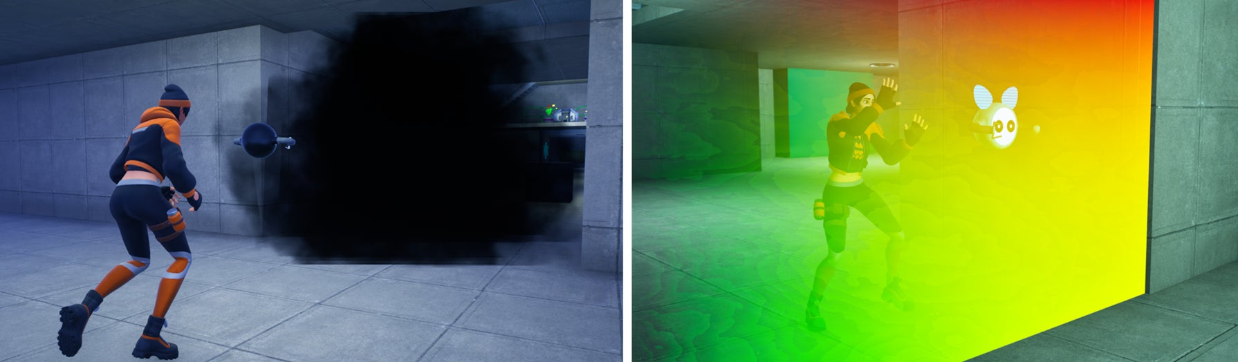 <妨害アイテム>稼いだゲーム内マネーを使用することで、競争相手を邪魔する妨害アイテムの購入も可能です。 競争相手の動きを一定時間止める「罠」や行動範囲を制限する「壁」の設置のほか、煙を発生させ視界を悪くする「スモーク」等の妨害アイテムが用意されています。 これらの妨害アイテムを活用することで、「カブー」の売買をしようとしている競争相手を邪魔してゲームを有利に運ぶことができます。