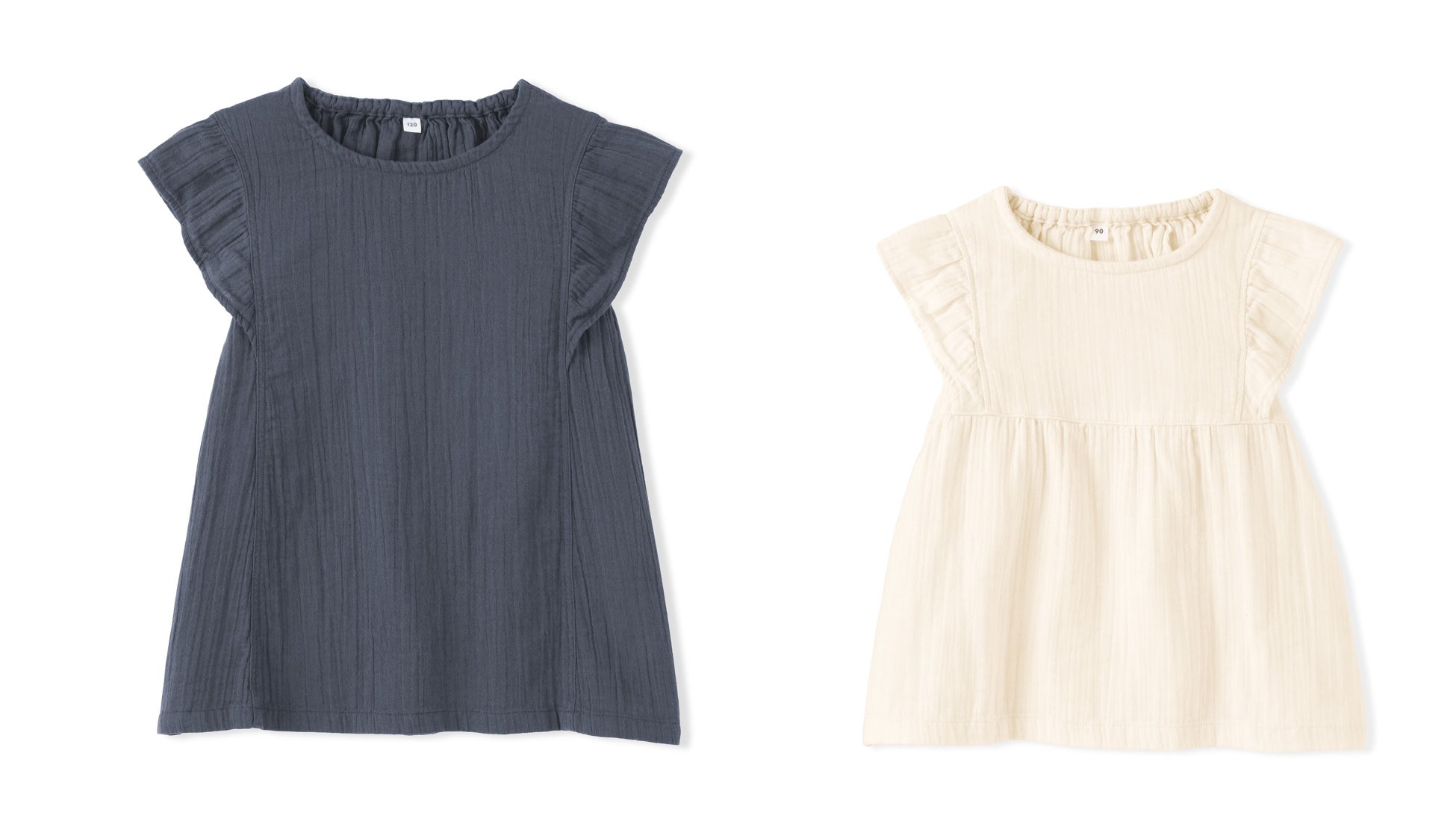 ①キッズ/ベビー 楊柳ガーゼフリルスリーブブラウス