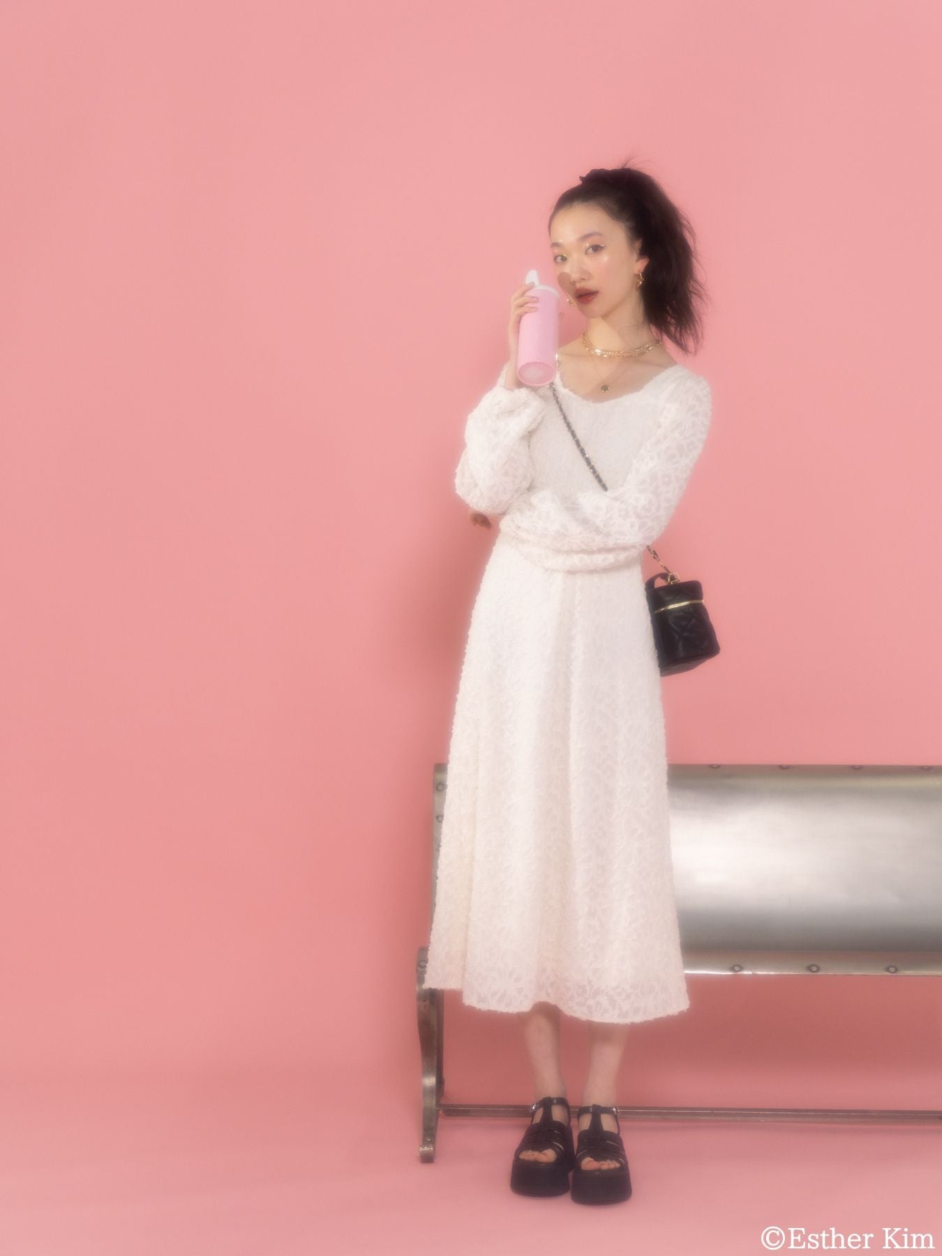 ヘルシーで女っぽいデザインに華やかなジャガード生地でエスター・キムらしいドリーミーなムードを表現しました。