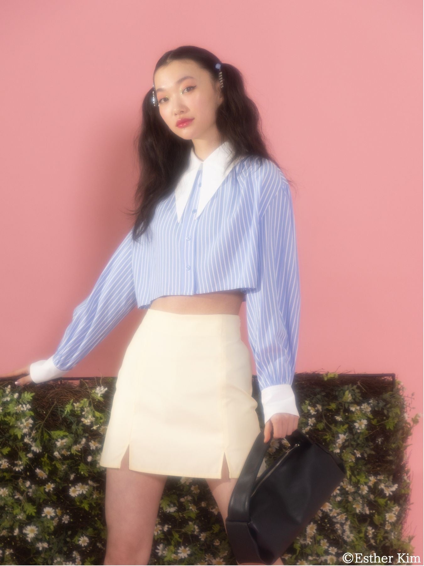 フロントサイドにさり気なく施したスリットがアクセントになったミニスカート。