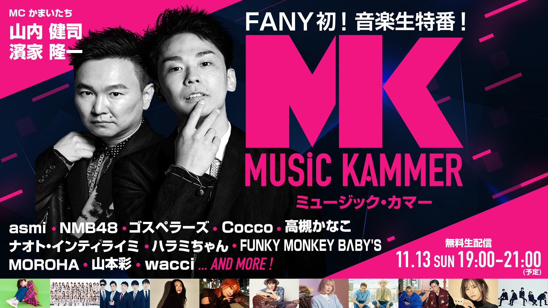 この度、FANY大感謝祭 無料生特番の第二弾として 『ミュージック・カマー』の配信が決定いたしました。