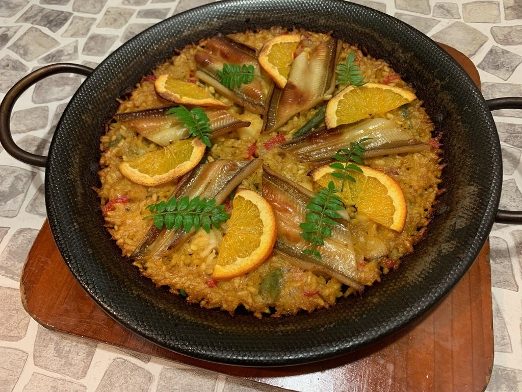 栄養価が高く低カロリーで脂質も低い穴子を使ったパエリア。オレンジをかけ、更にさっぱりとお召しあがりいただけます。